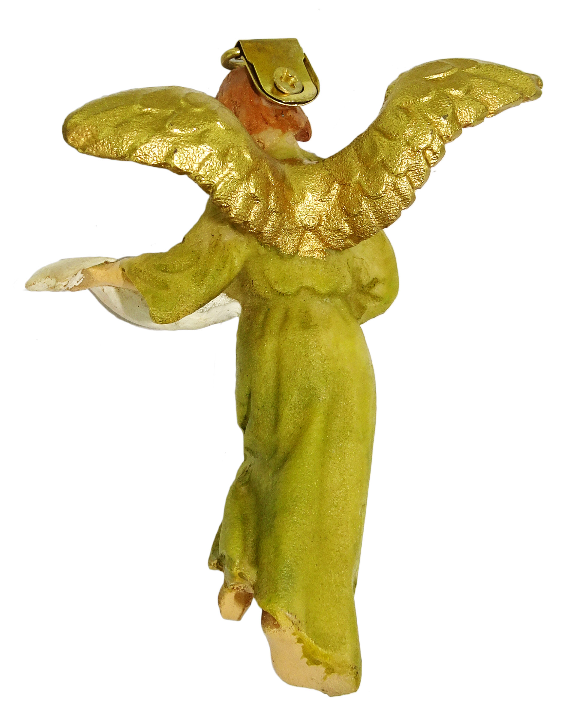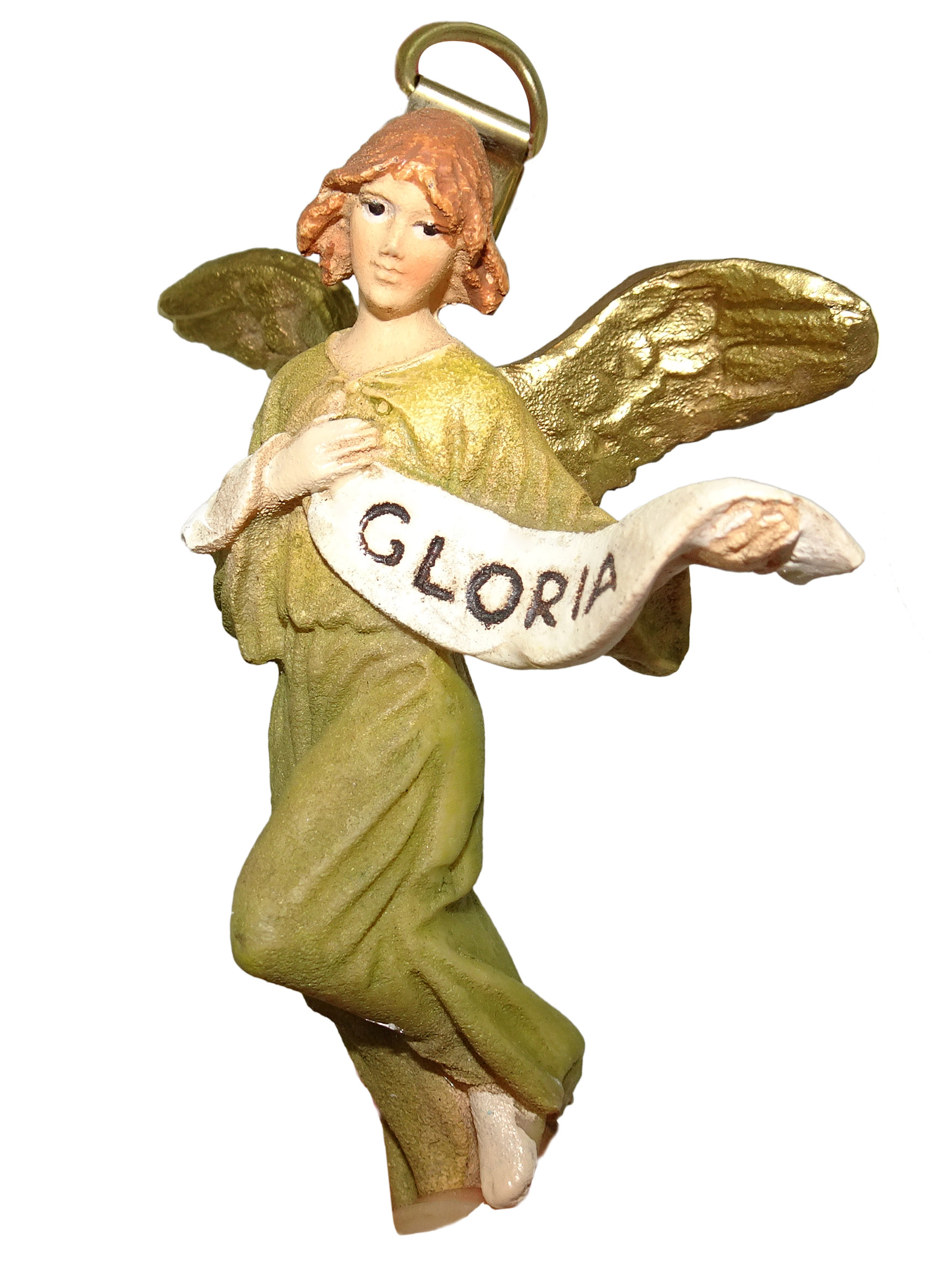 La statuina dell’Angelo Gloria per presepe Landi da 10 cm, in resina colorata e rifinita a mano, è stata creata dallo scultore d’arte sacra Martino Landi e rappresenta un pezzo che non può mancare nel vostro presepe tradizionale. L’Angelo mostra un drappo con la scritta “Gloria” e veste una tunica verde. Il colore dorato brillante delle ali contribuisce a dare importanza alla statuina, attraendo l’attenzione di chi ammira il presepe. L’Angelo Gloria, grazie all'occhiello collocato nella parte posteriore della testa della statuina, può trovare agevolmente posto sulla capanna o in prossimità della grotta, dove può essere appeso per annunciare il lieto evento e indicare ai visitatori di Gesù Bambino il luogo dove riposa la Sacra Famiglia. La sinuosità delle linee delle vesti e la fedeltà di riproduzione dei dettagli rappresentano la firma di Landi, che rimane sempre fedele alla tradizione, proponendo personaggi e particolari resi con precisione artigianale.