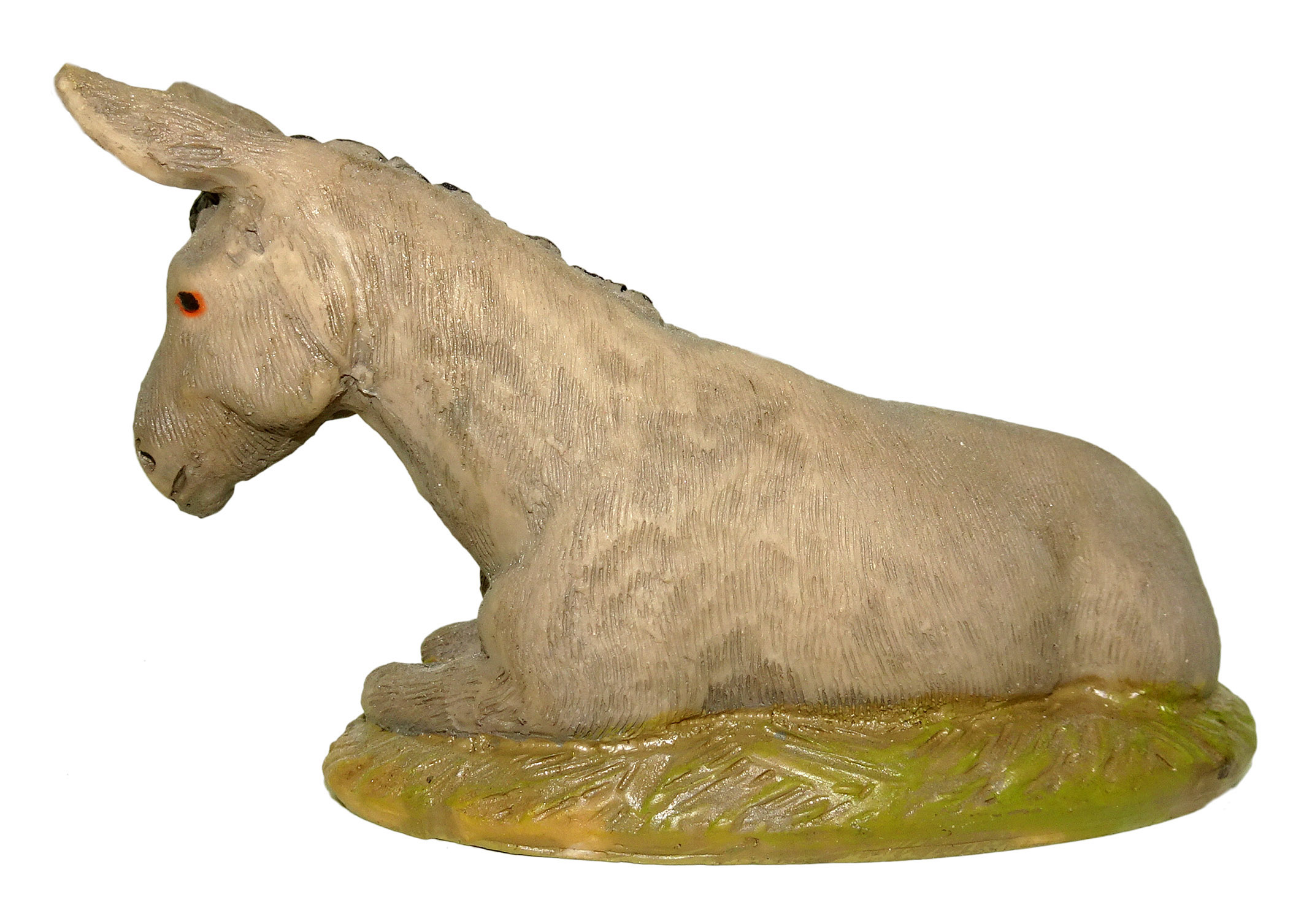 La statuina dell’asino per presepe Landi da 10 cm, in resina colorata e rifinita a mano, è stata ideata dallo scultore d’arte sacra Martino Landi ed è un elemento irrinunciabile nel vostro presepe. L’asino è raffigurato accovacciato per trovare posto nella capanna o nella grotta insieme al bue e alla Sacra Famiglia. L’attenzione ai dettagli del manto dell’asino rappresenta la firma di Landi, che rimane sempre fedele alla tradizione, proponendo personaggi e particolari resi con precisione artigianale.