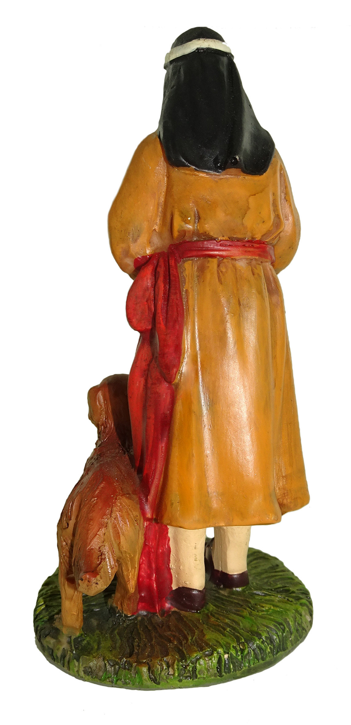 Le pieghe della veste stretta in vita da una cinta rossa, così come la fedeltà di riproduzione dei dettagli del manto del cane, vi consentiranno di ricreare scene molto realistiche. Questa statuina è adatta a essere usata nel presepe Landi da 10 cm.