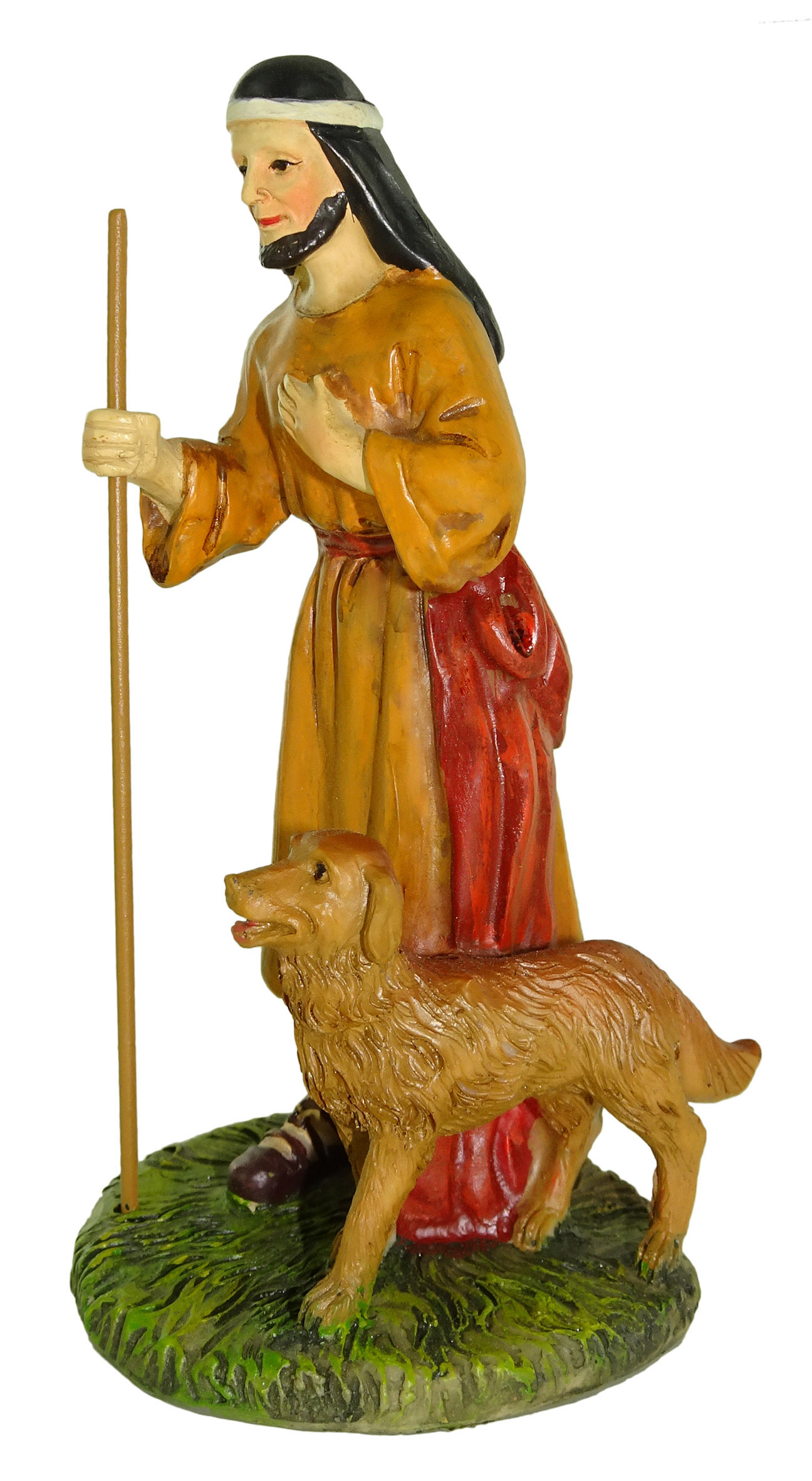 Ferrari & Arrighetti Statuine Presepe, Statuina Pastore con Cane per Presepe da 10 Cm, Statuina Pastore per Presepe Classico / Tradizionale, Resina Dipinta a Mano
