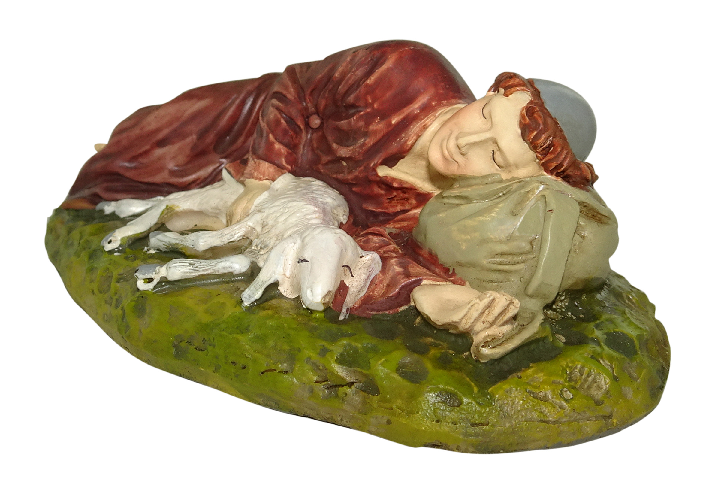 Ferrari & Arrighetti Statuine Presepe, Statuina Pastore Dormiente / Sdraiato con Pecora per Presepe da 10 Cm, Statuina Pastore per Presepe Classico/Tradizionale, Resina Dipinta a Mano