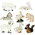 Il set è composto da 8 statuine per piccoli presepi. In resina dipinta a mano, raffigurano i seguenti animali: un gatto, un cane, uno scoiattolo, due pecore e un montone, una coppia di oche e una oca singola. Le altezze, che variano da 2 cm a 3,5 cm, cambiano a seconda dell'animale considerato. I dettagli della resa del manto delle pecore e del piumaggio delle oche contribuiranno a rendere l'atmosfera agreste del vostro piccolo presepe ancora più realistica.