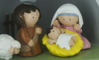 STOCK: Natività con Re Magi in resina colorata su base 18 x 8 cm