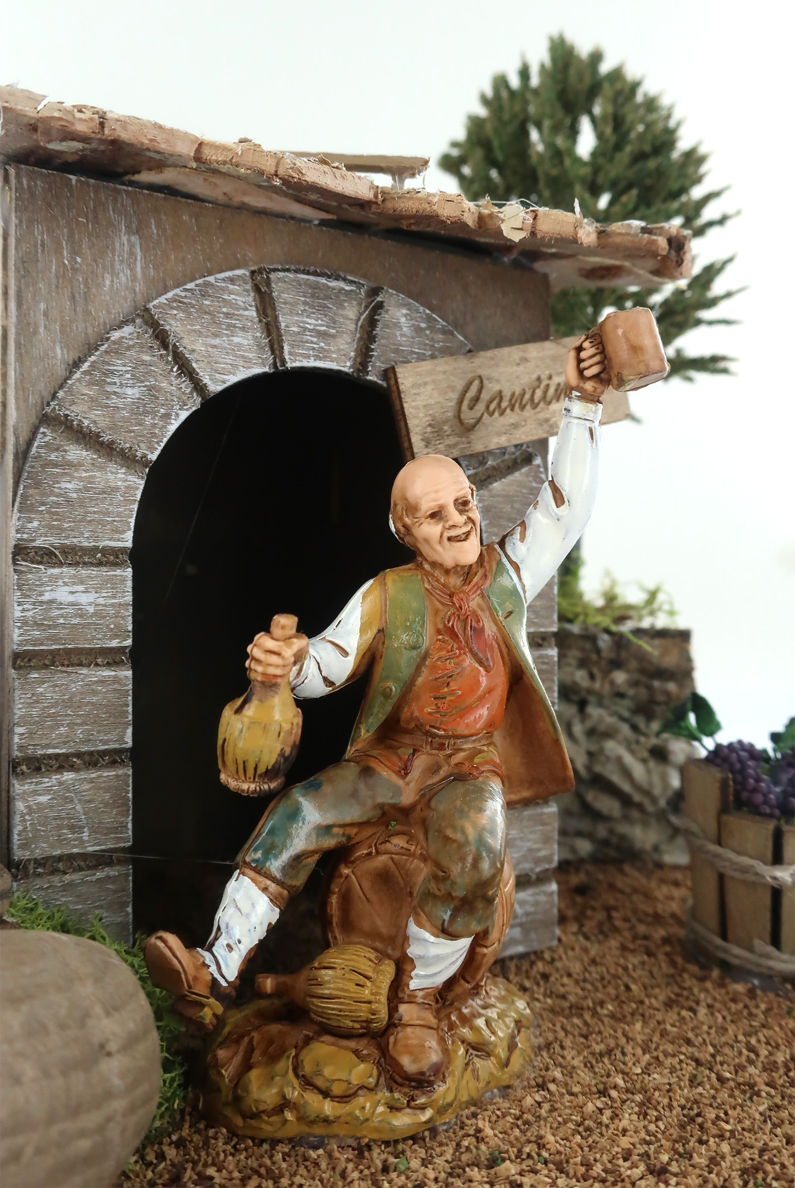 Cantina con Bevitore Ubriaco, Cantiniere per Presepe, Bertoni Presepe Linea Natale, Plastica/Legno, 19 x 15 x 16 Cm