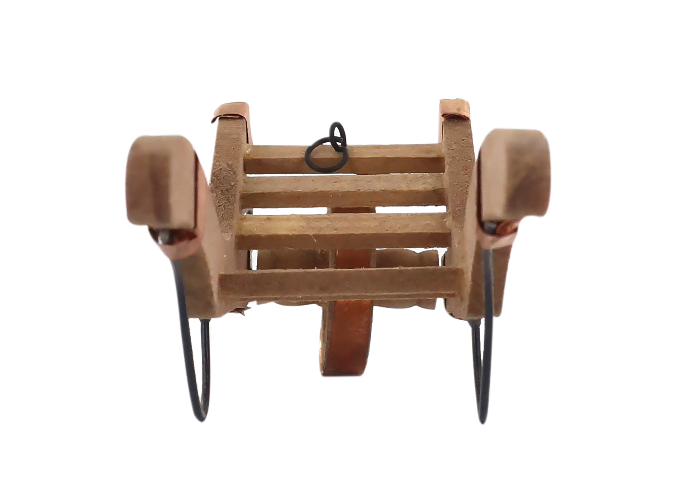 Accessori per presepe: Carriola del boscaiolo. Dimensioni: 13 x 4 x 4 cm. Materiale: legno. Realizzato artigianalmente in Italia.