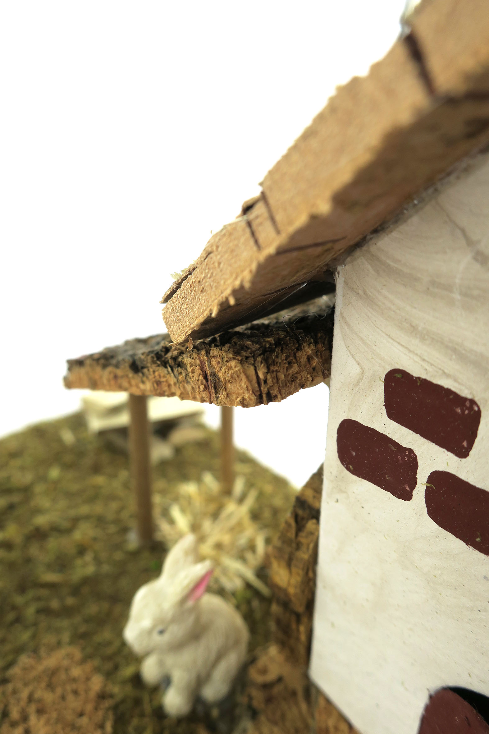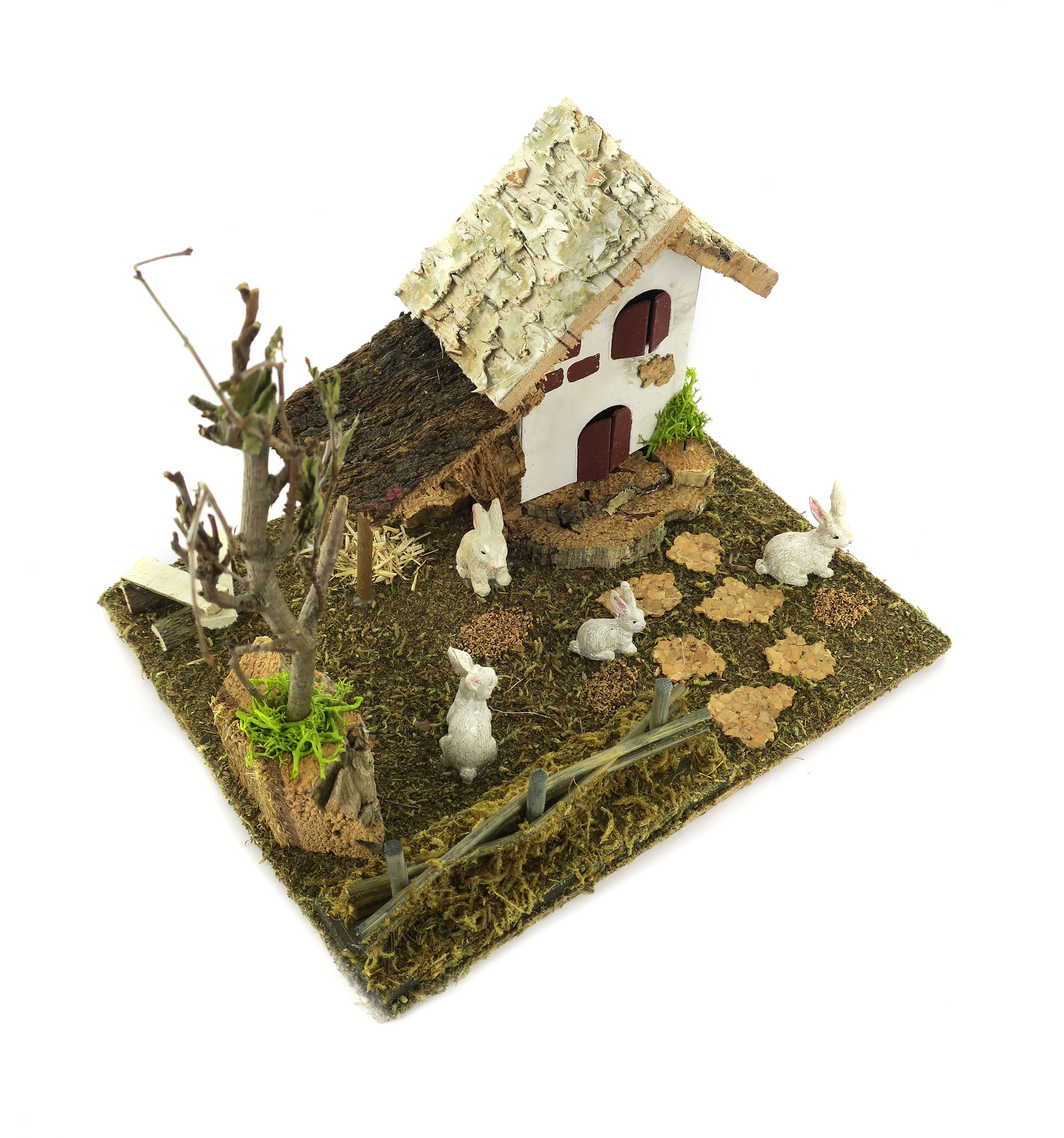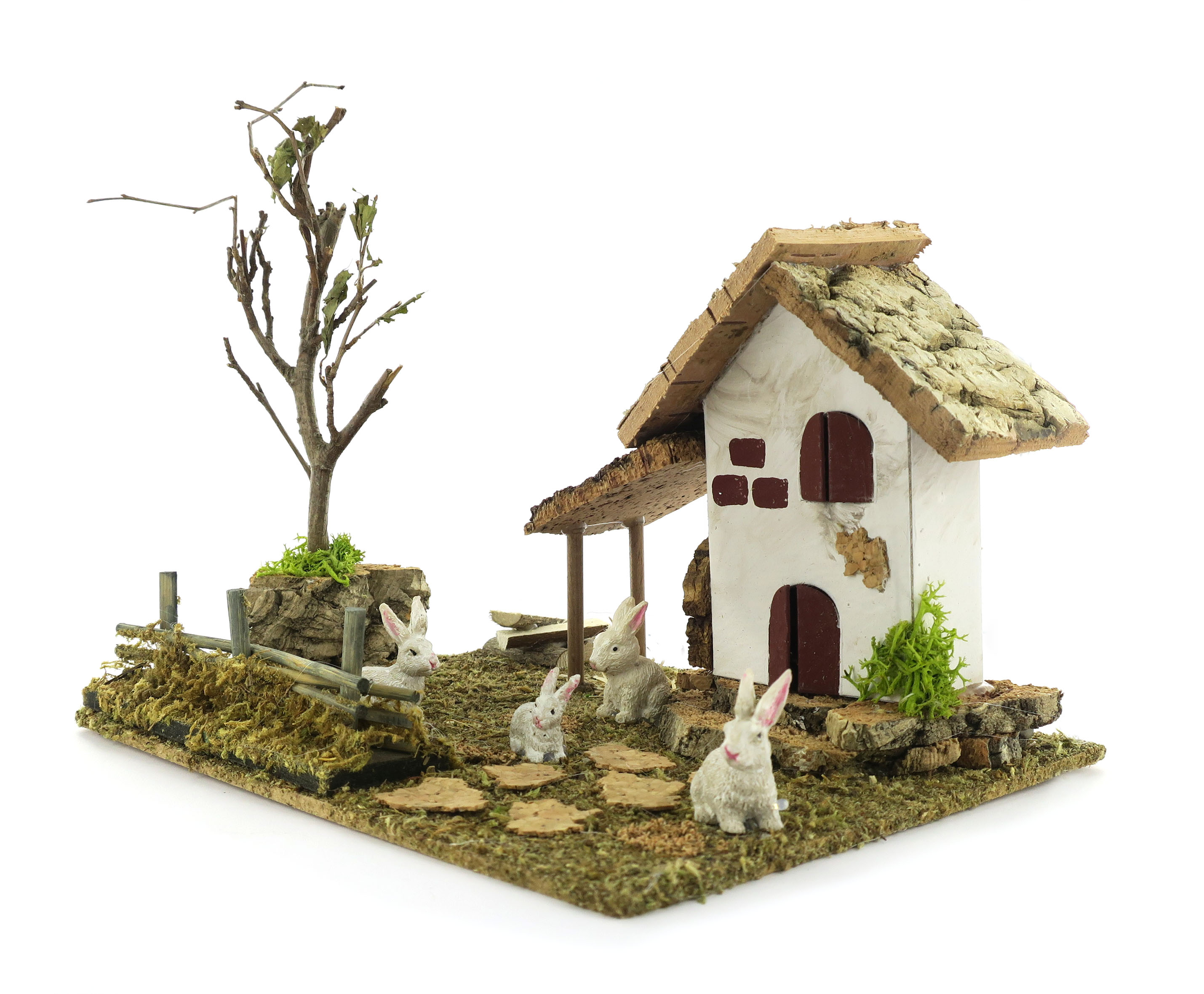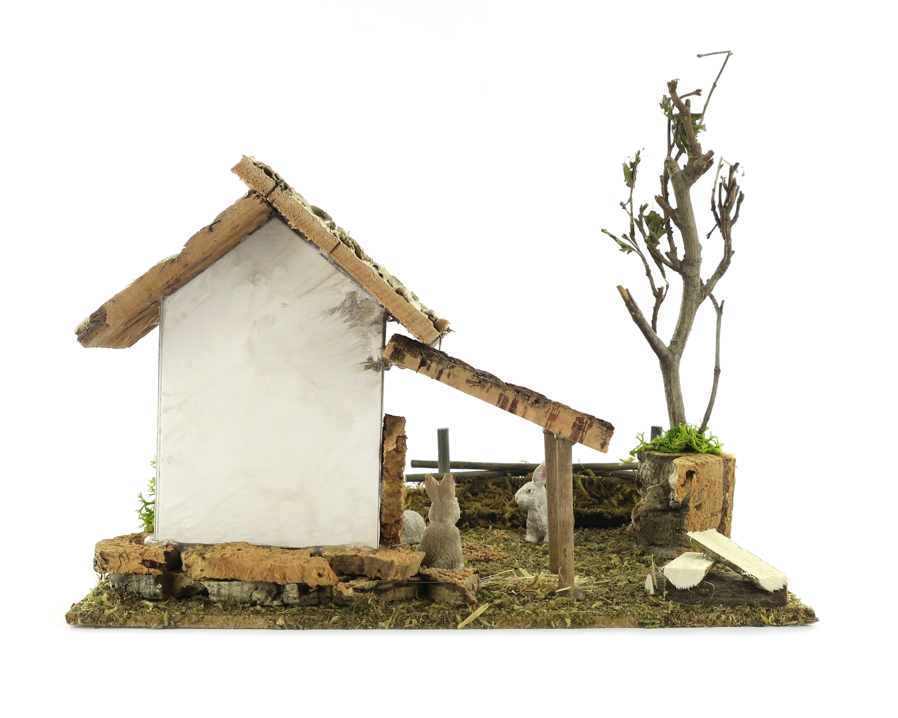 Casetta dei Conigli in Miniatura per Presepe, Linea Natale Presepi Bertoni, Legno e Resina, Multicolore, 19 x 15 x 14 Cm