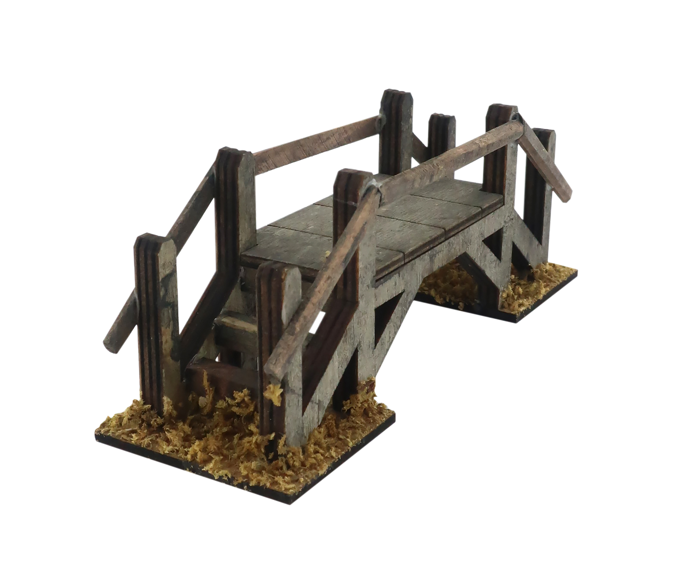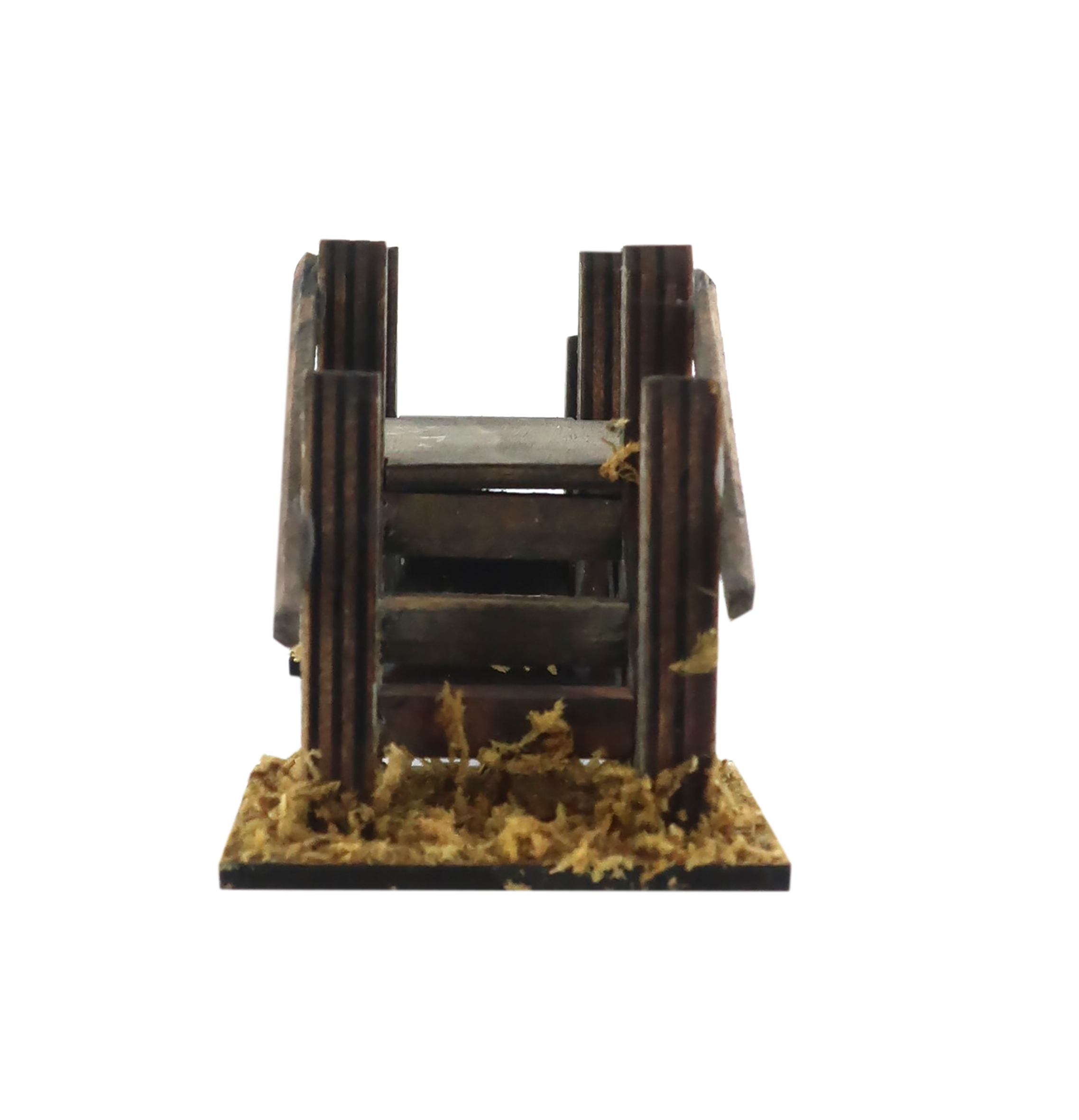 Accessori per presepe: ponticello in legno con ringhiera. Dimensioni: 5 x 16 x 7 cm. Materiale: legno. Realizzato artigianalmente in Italia.
