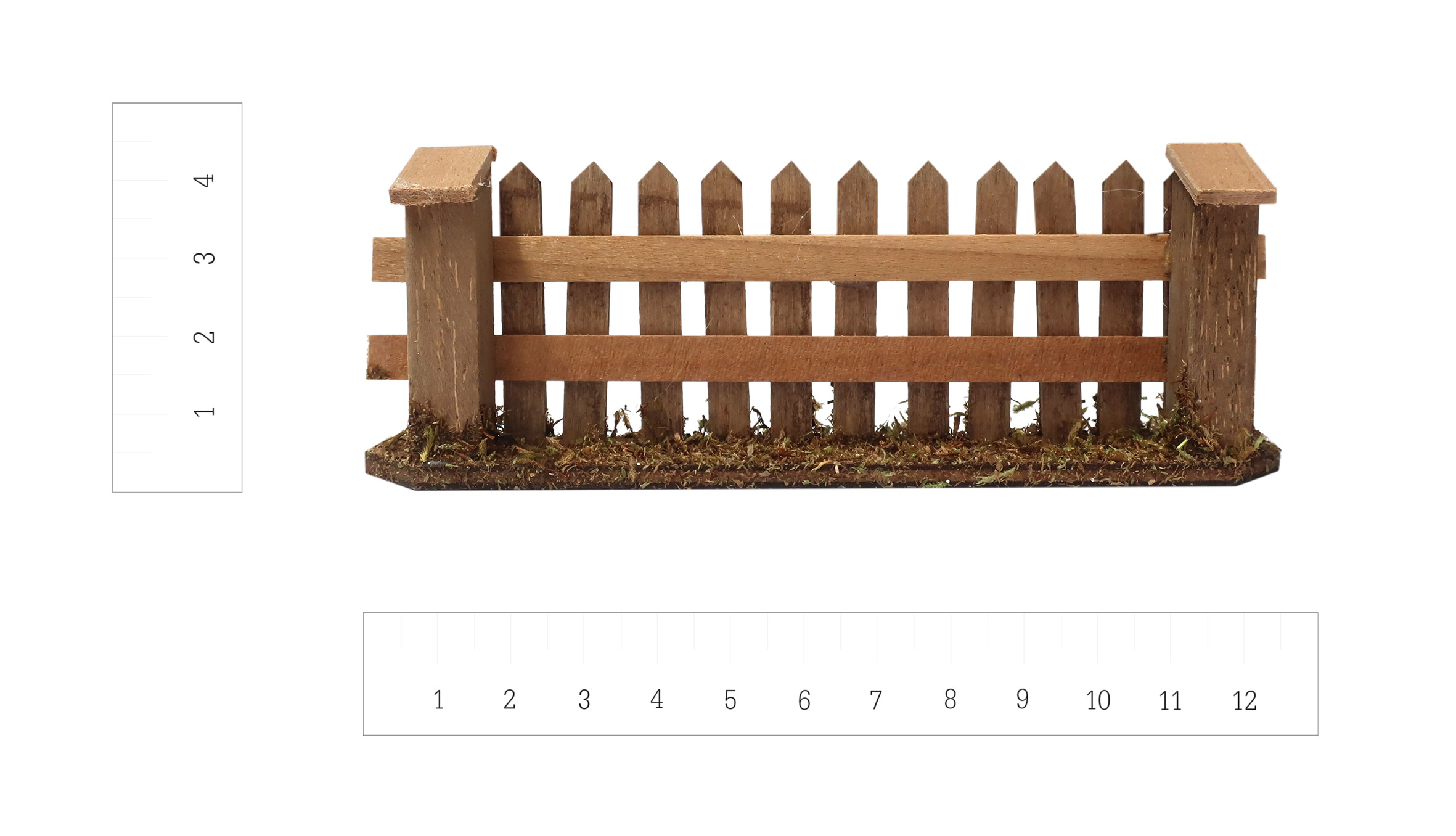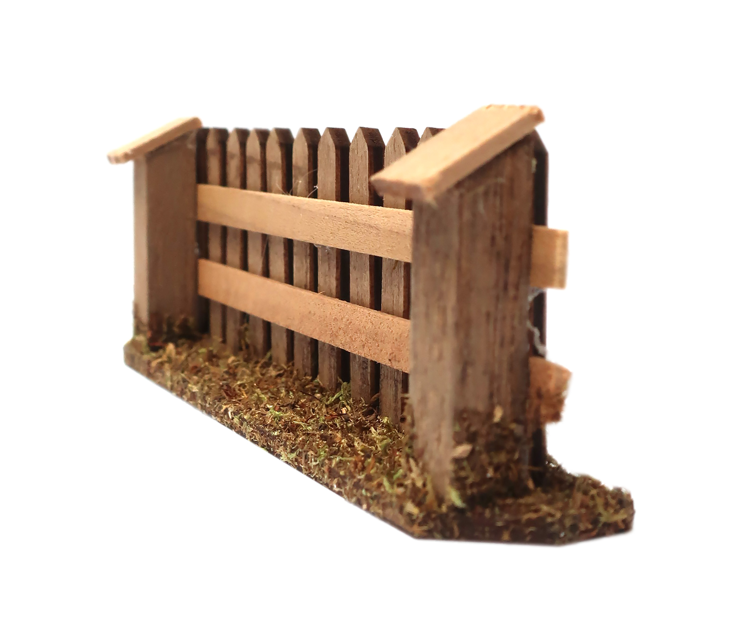 Accessori per presepe: Staccionata taglia piccola. Dimensioni: 12,5 x 2 x 4,5 cm. Materiale: legno. Realizzato artigianalmente in Italia.