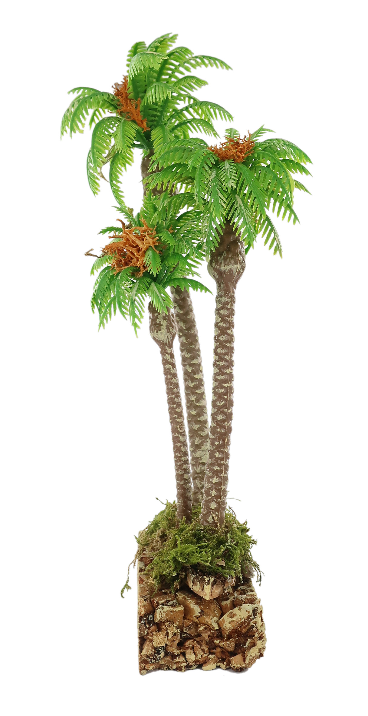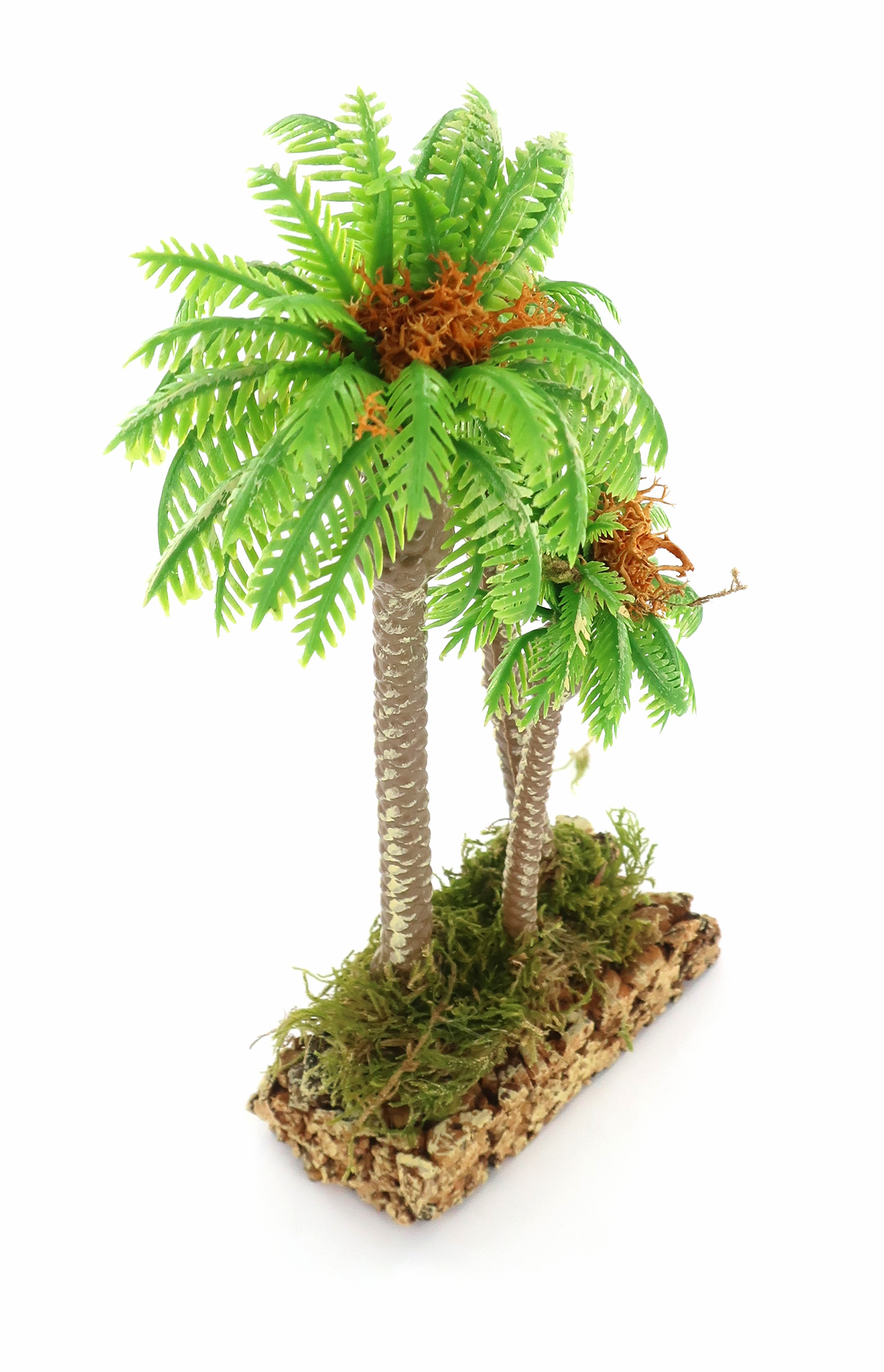 Accessori per presepe: Palma tripla da 24 cm. Materiali: legno, sughero e plastica. Realizzato artigianalmente in Italia.