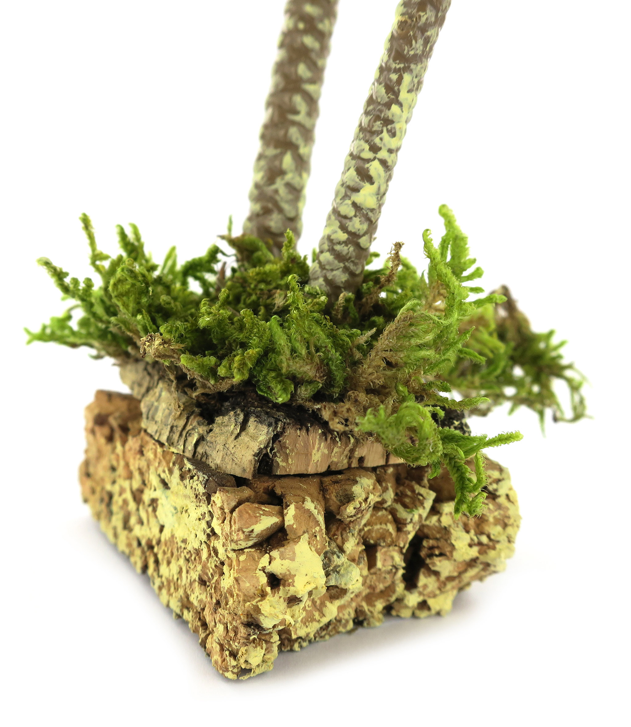 Accessori per presepe: Palma Doppia da 18 cm. Materiali: legno, sughero e plastica. Realizzato artigianalmente in Italia.