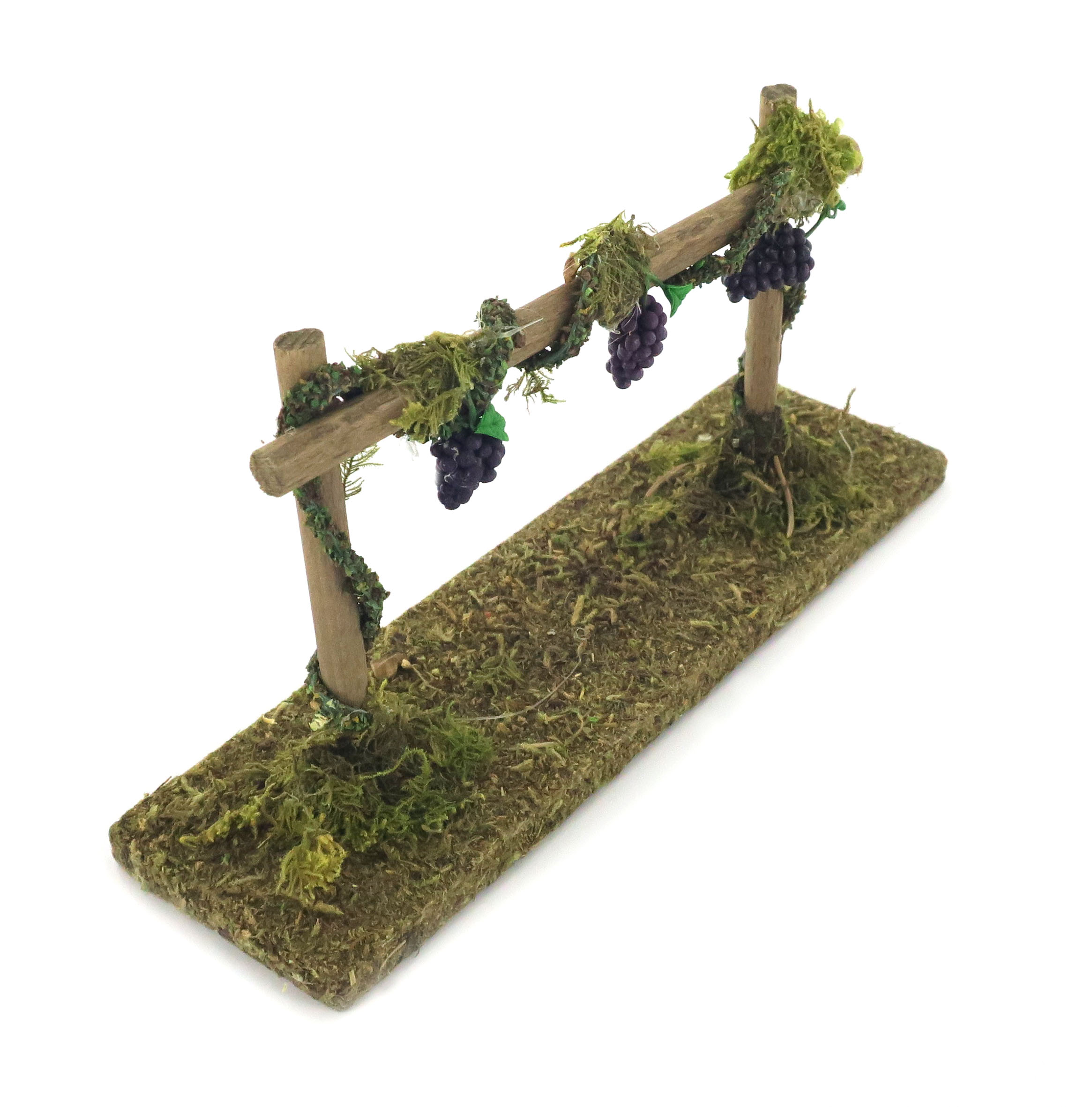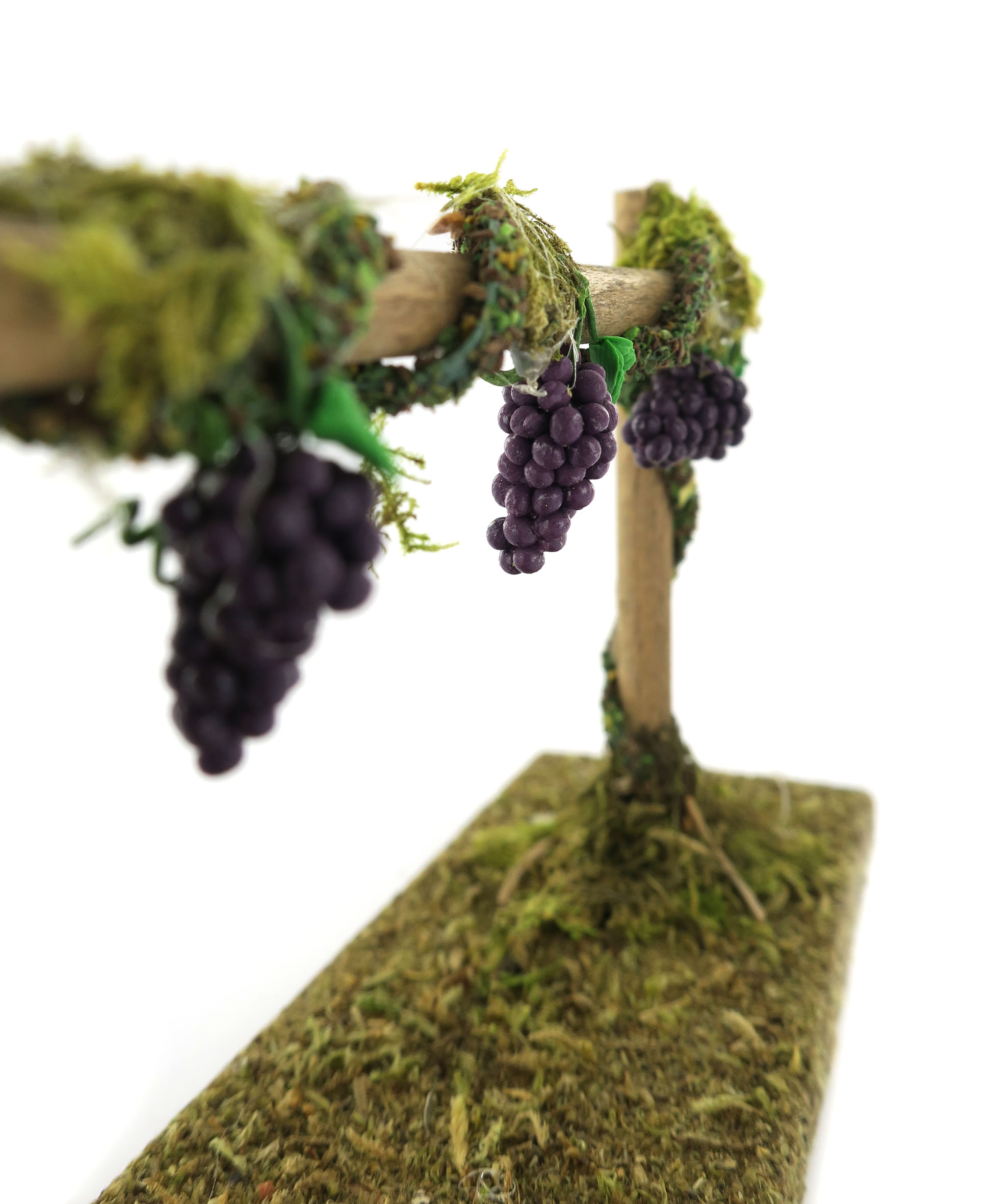 Accessori per presepe: Filare Di Vigna Con Uva Nera. Dimensioni: 15 x 4 x 8 cm. Materiale: legno e sughero. Realizzato artigianalmente in Italia.