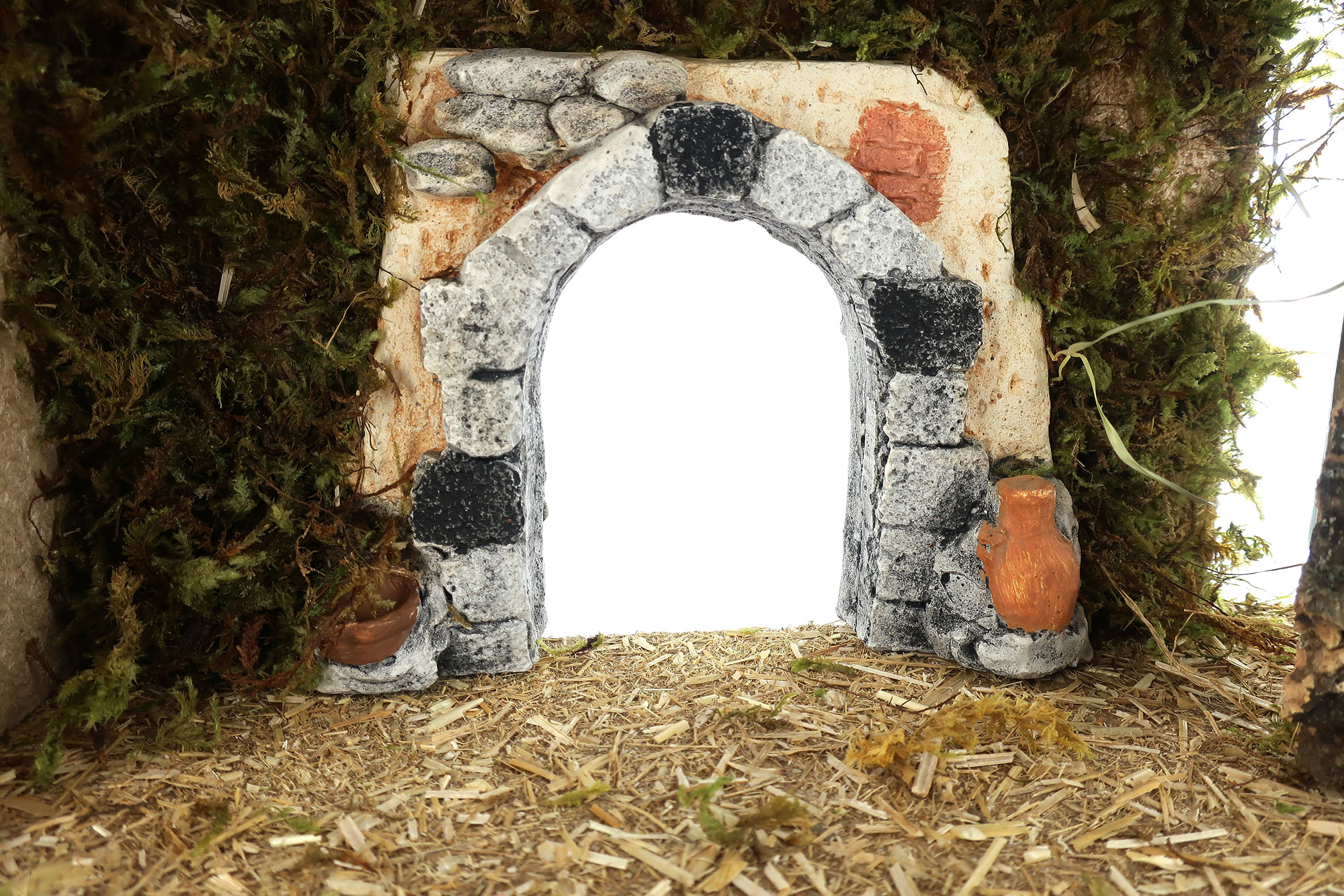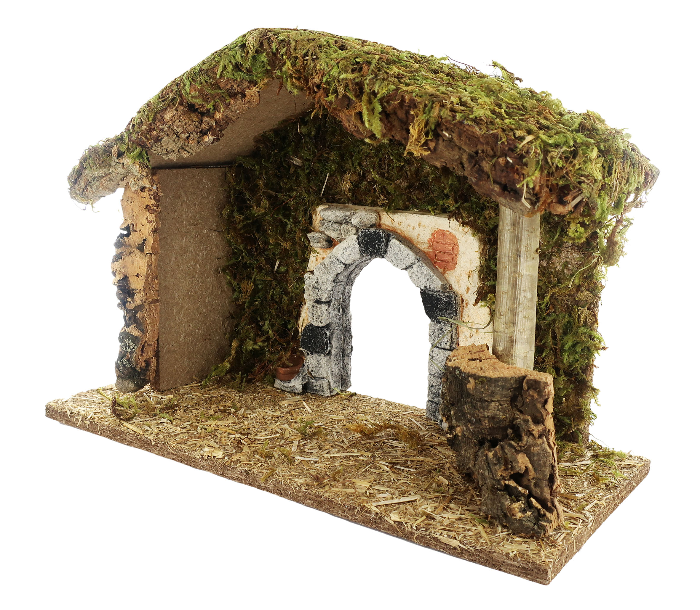 Capanna con Arco per Presepe, Vuota, Per Statuine da 10 Cm Non Incluse, Legno/Gesso, Multicolore, 36x15x24 Cm Circa