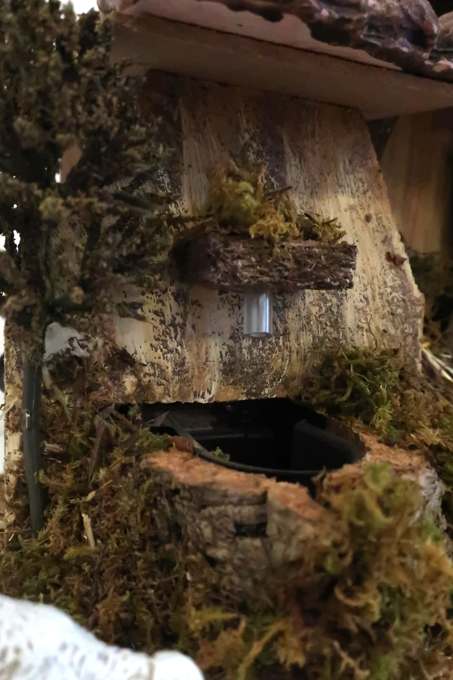 Capanna con fontana elettrica, alimentata a 220V. Completa di 5 statuine da 10 cm e una pecora. Dimensioni: 35 x 16 x 25 cm. Materiali: Legno, Sughero, Muschio e Paglia. Realizzato artigianalmente in Italia.