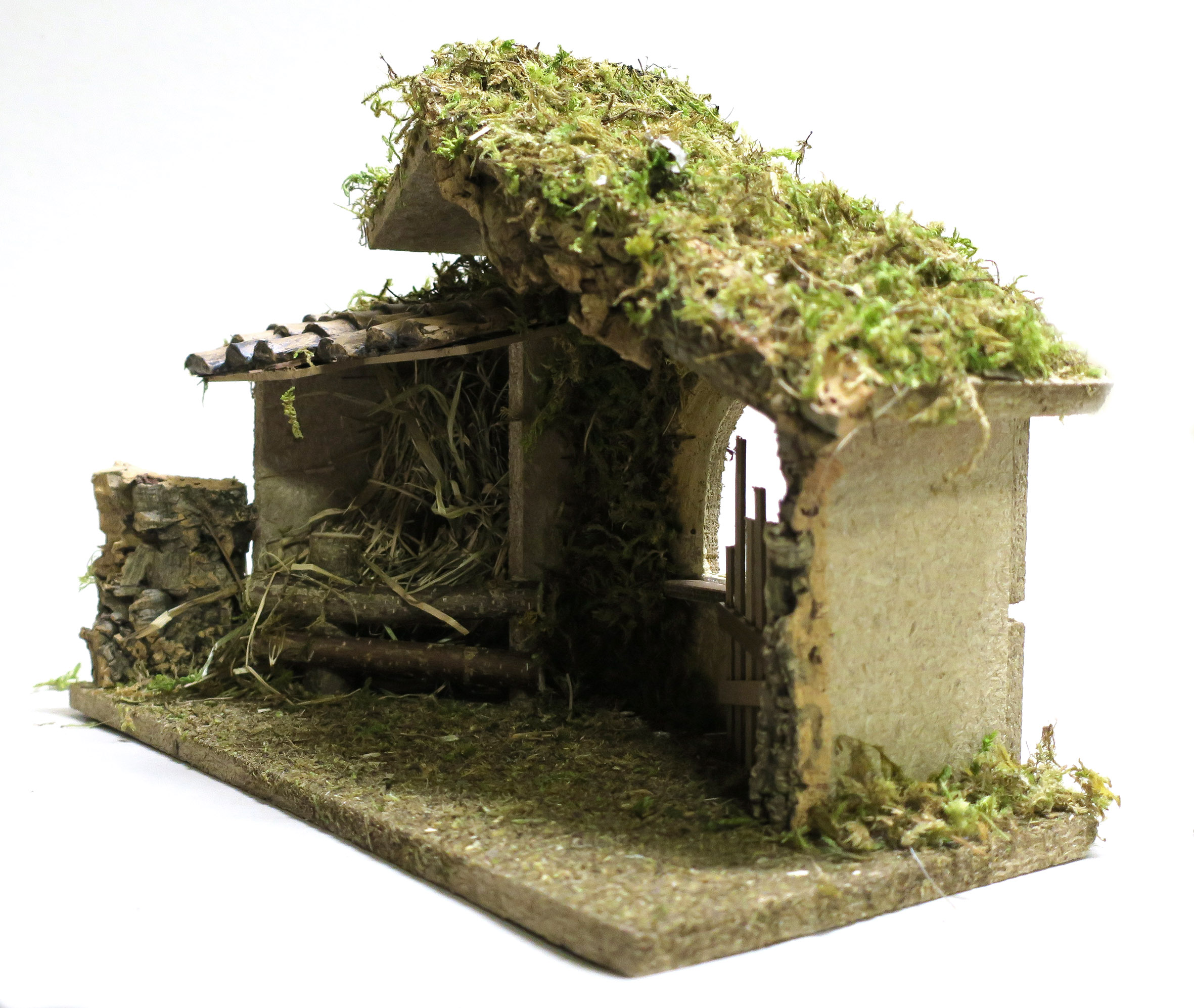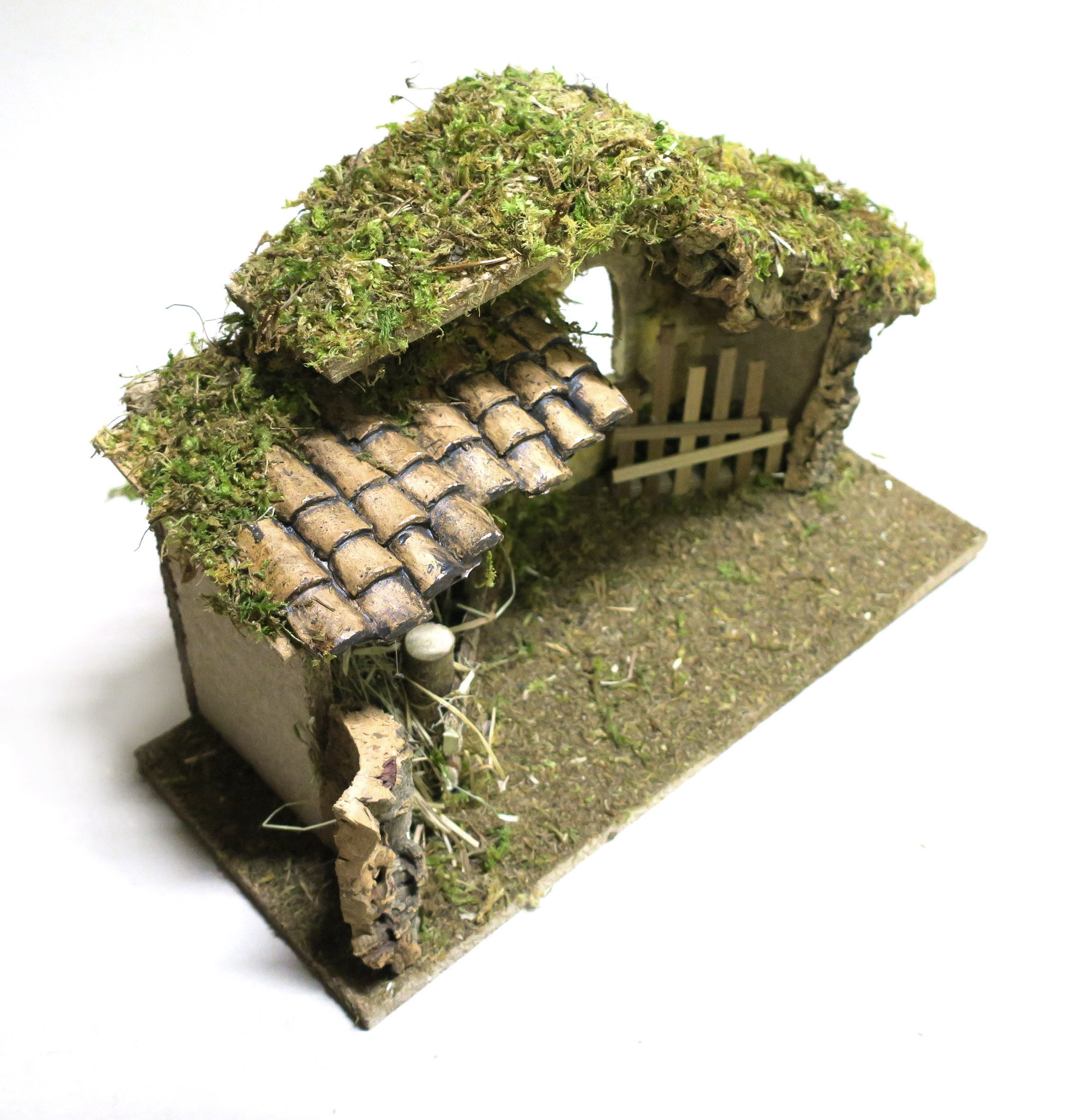 Capanna vuota con steccato e fienile. Ideale per personaggi da 10/12 cm. Altre caratteristiche: tettoia in tegole di terracotta. Dimensioni: 44 x 19 x 30 cm. Materiali: Legno, Sughero, Muschio e Paglia. Capanna per presepe realizzata artigianalmente in Italia. Questa capanna rustica rappresenta il pezzo centrale del presepe tradizionale in contesto agreste / di campagna. Grazie all'aspetto volutamente grezzo della capanna, completata anche da una graziosa zona adibita a fienile, la struttura risulta ricordare gli edifici di campagna, dove il bue e l'asinello, insieme alla sacra famiglia, posso trovare riparo. Perfetta quindi se completata con animali da cortile come galline e piccole caprette. L'uso sapiente di materiali semplici ma molto scenografici come pezzi di sughero, muschio e graziose tegoline di terracotta attribuiscono a questa capanna per presepe un aspetto molto tradizionale. Questa capanna dallo stile agreste è compatibile con statuine della linea da 10 o 12 centimetri; rispettare tale requisito vi permetterà di usare questa capanna con dei personaggi di altezza corretta e ottenere così una rappresentazione della Natività proporzionata ed equilibrata.