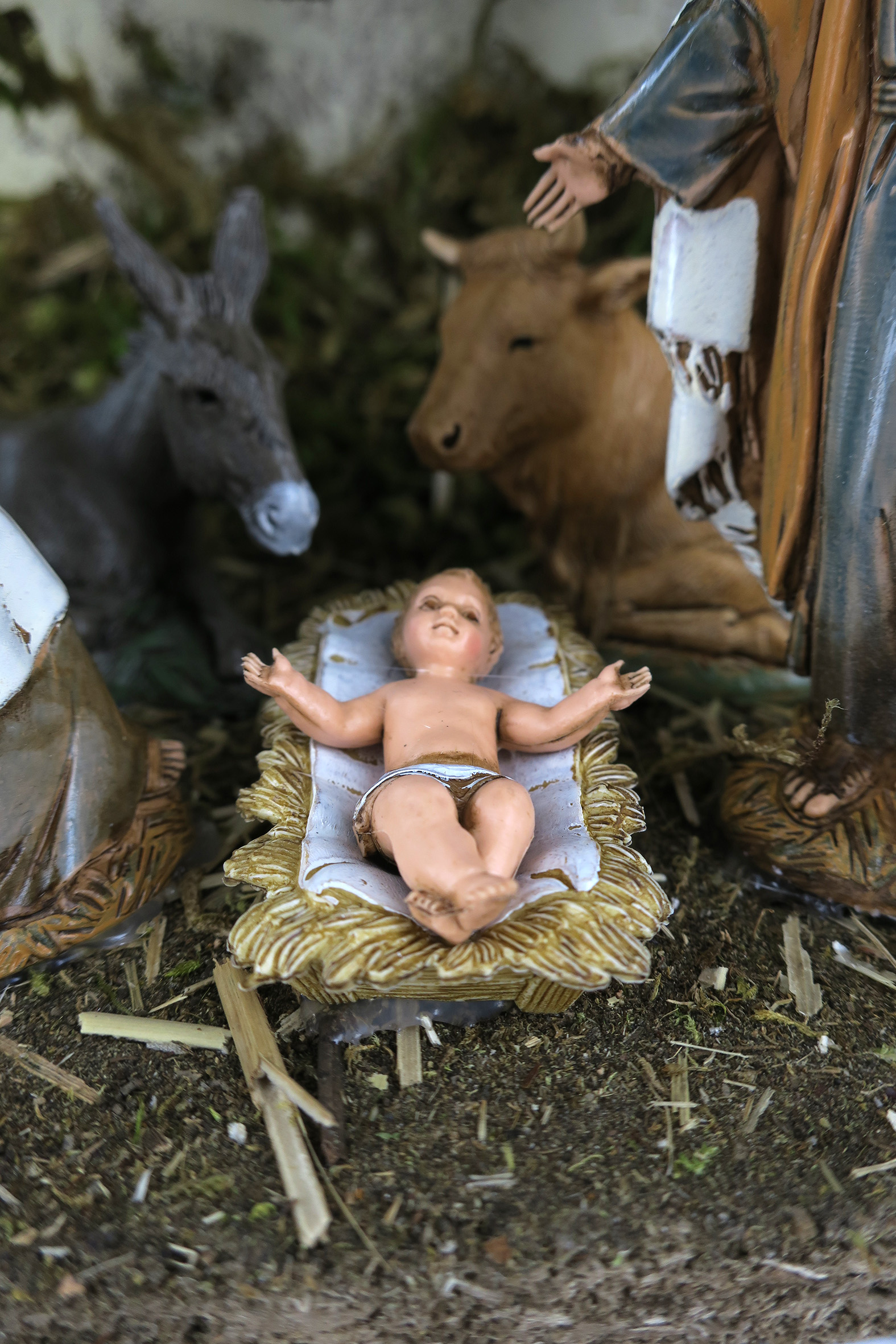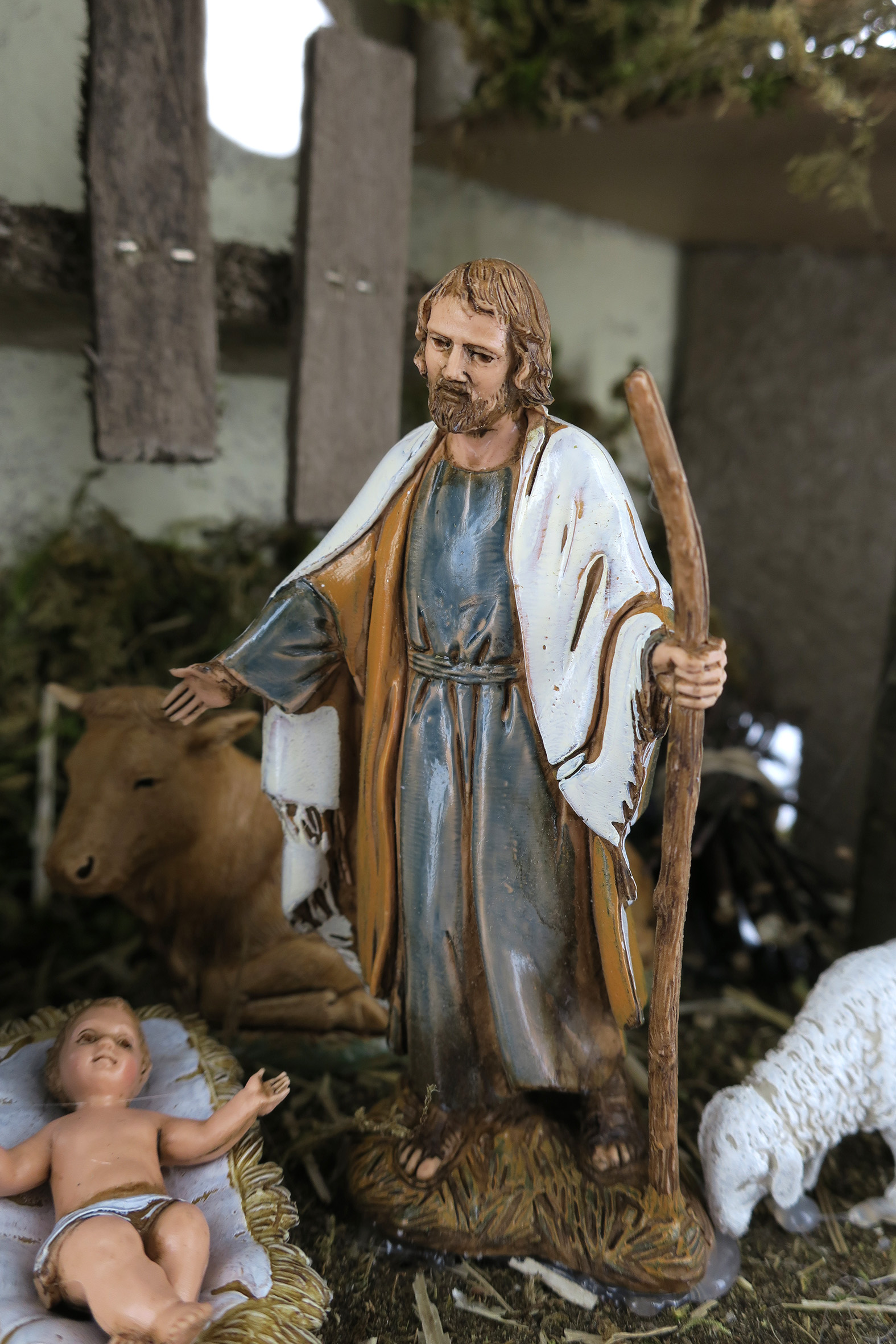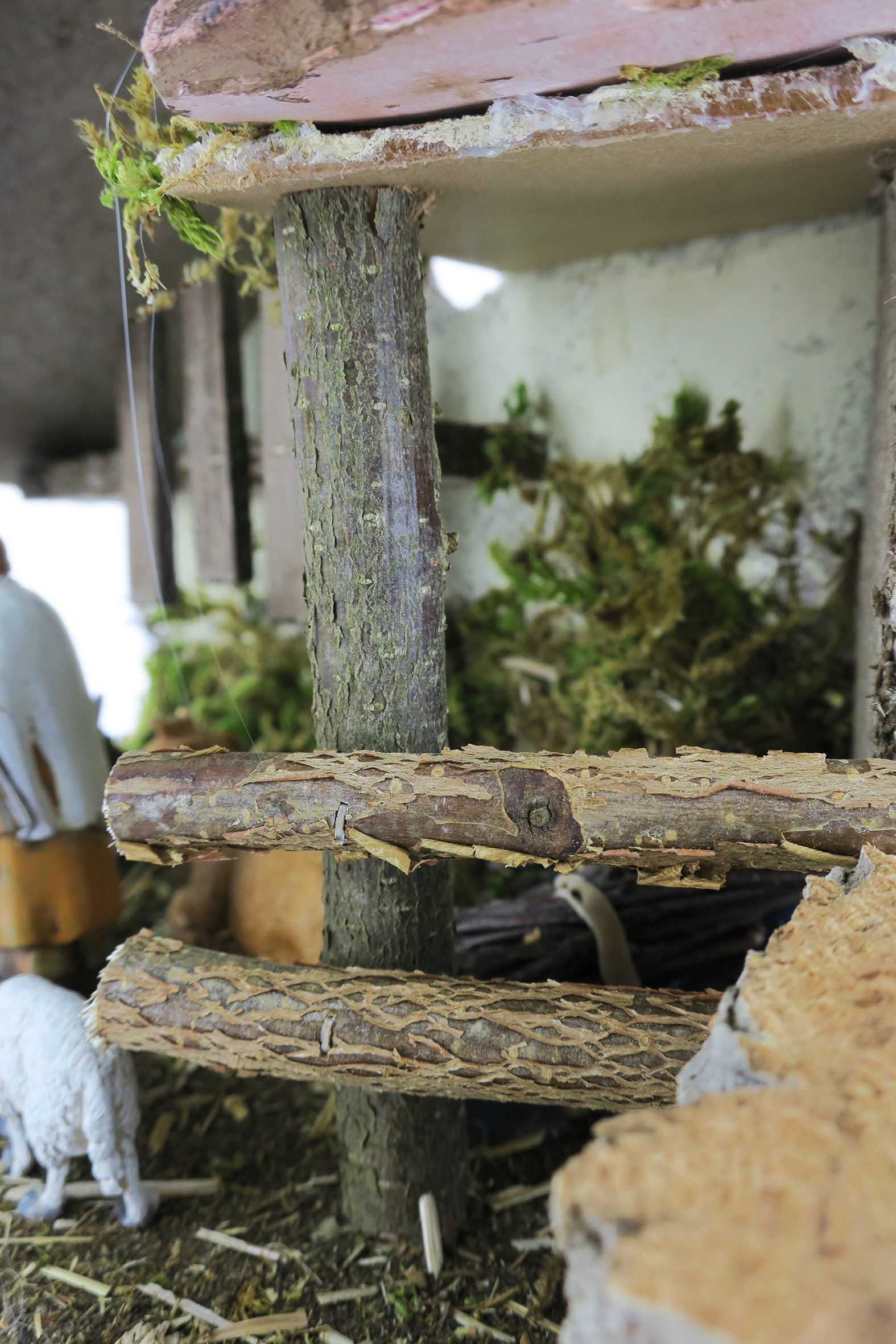 Capanna con statuine in resina da 10 cm e una pecora. Alimentazione elettrica 220V (fuoco). Altre caratteristiche: tegole in terracotta. Dimensioni: 36 x 15 x 24 cm. Materiali: Legno, Sughero, Paglia e Muschio. Realizzato artigianalmente in Italia.