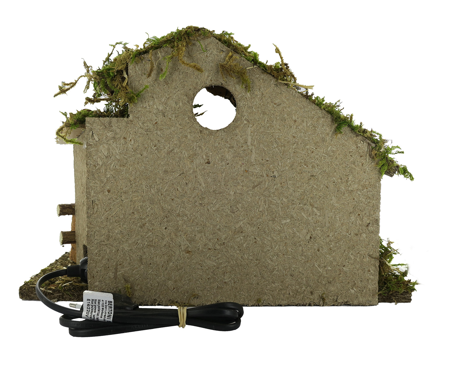 Capanna Presepe con Statuine Natività 10 Centimetri e Luce Effetto Fuoco, 220V, Legno/Resina, Multicolore, 36x15x24 Centimetri