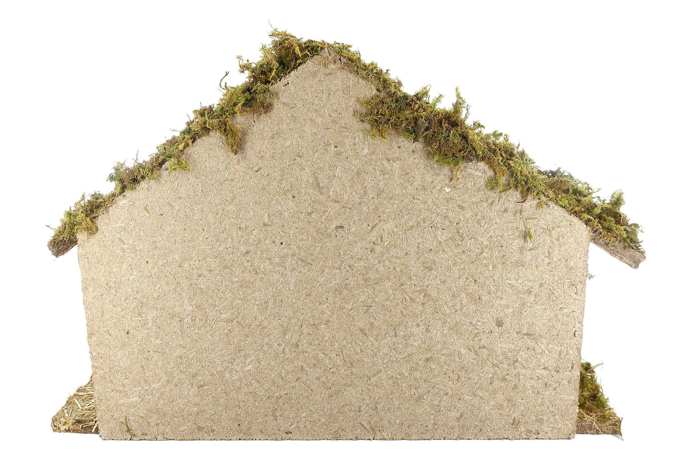 Capanna vuota, ideale per statuine da 10/12 cm. Altre caratteristiche: porta in gesso. Dimensioni: 42 x 18 x 28 cm. Materiali: Legno, Sughero e Muschio. Realizzato artigianalmente in Italia