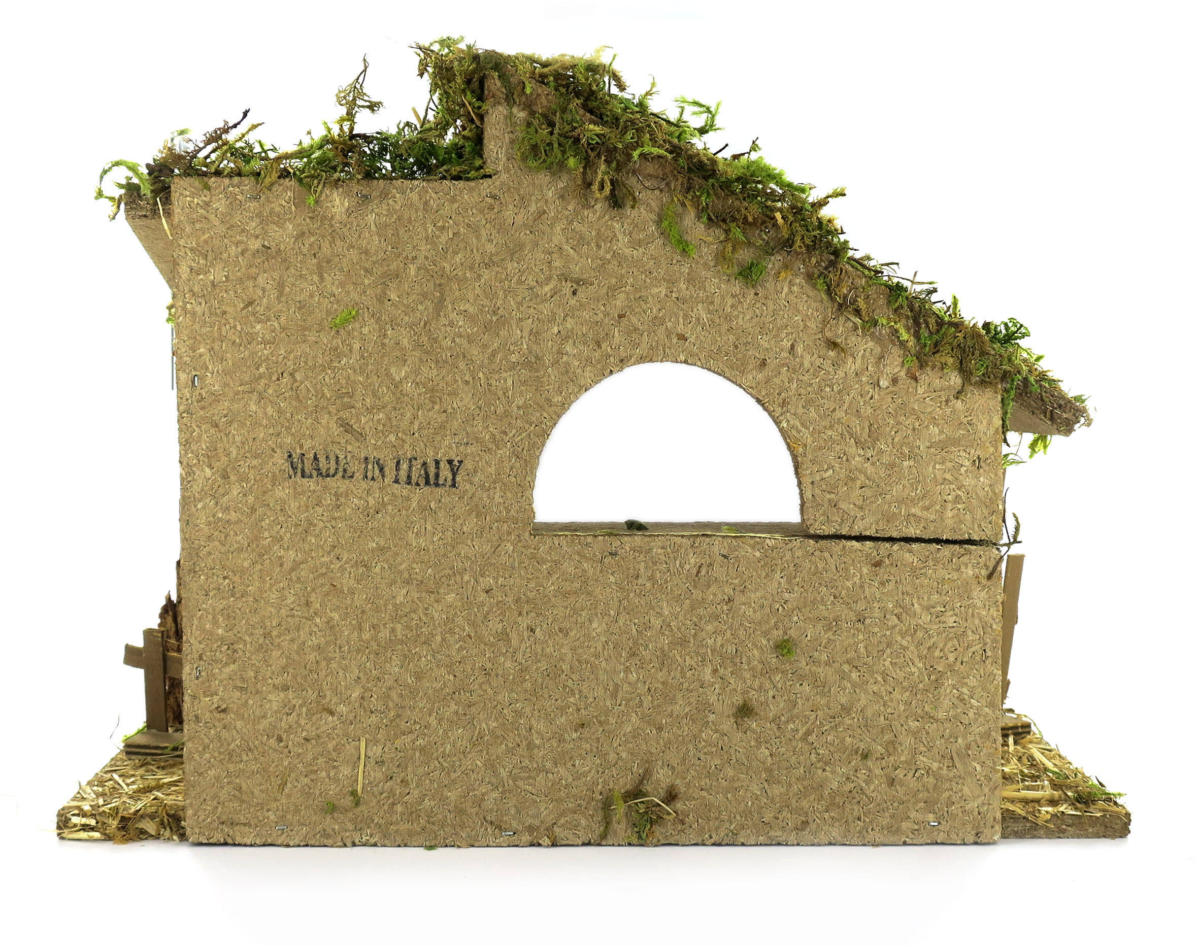 Capanna Vuota per Presepe, con Steccati e Paglia, per Statuine da 10 Centimetri non Incluse, Legno, 36x16x27 Centimetri