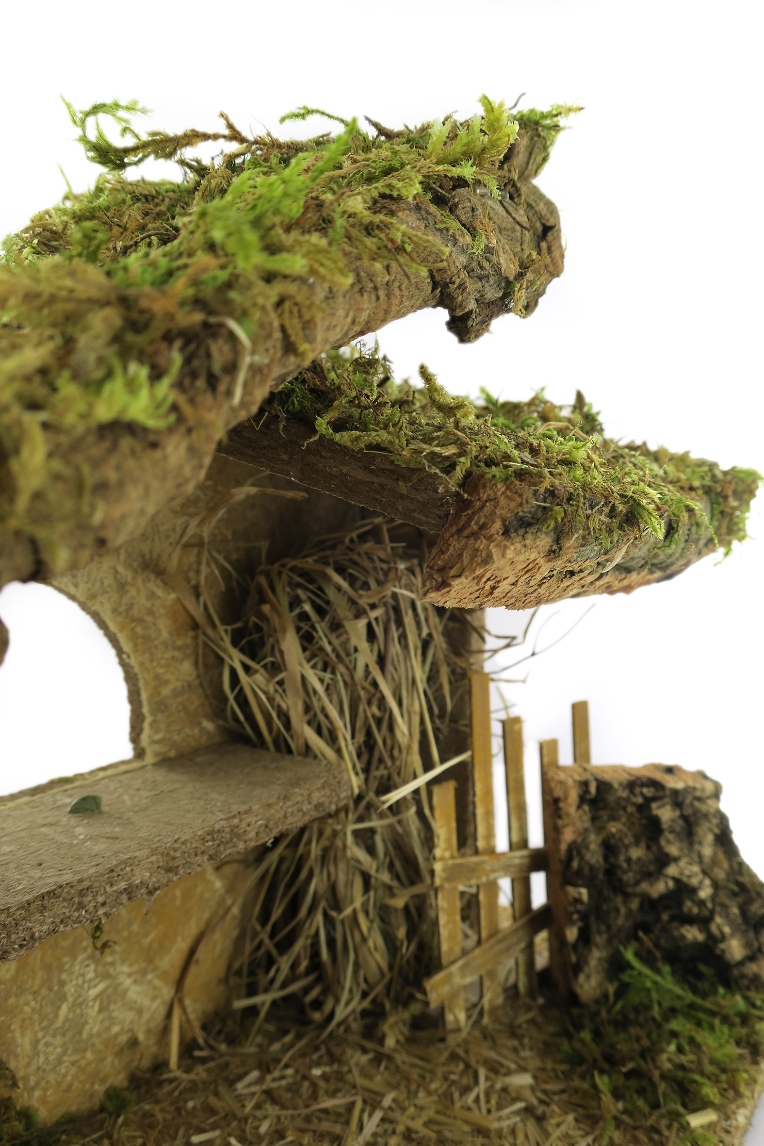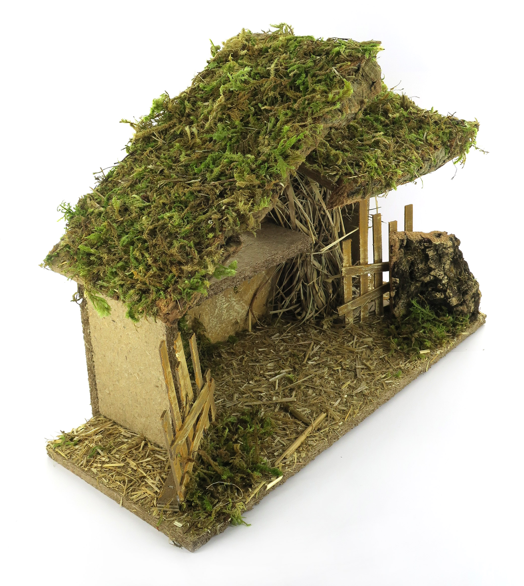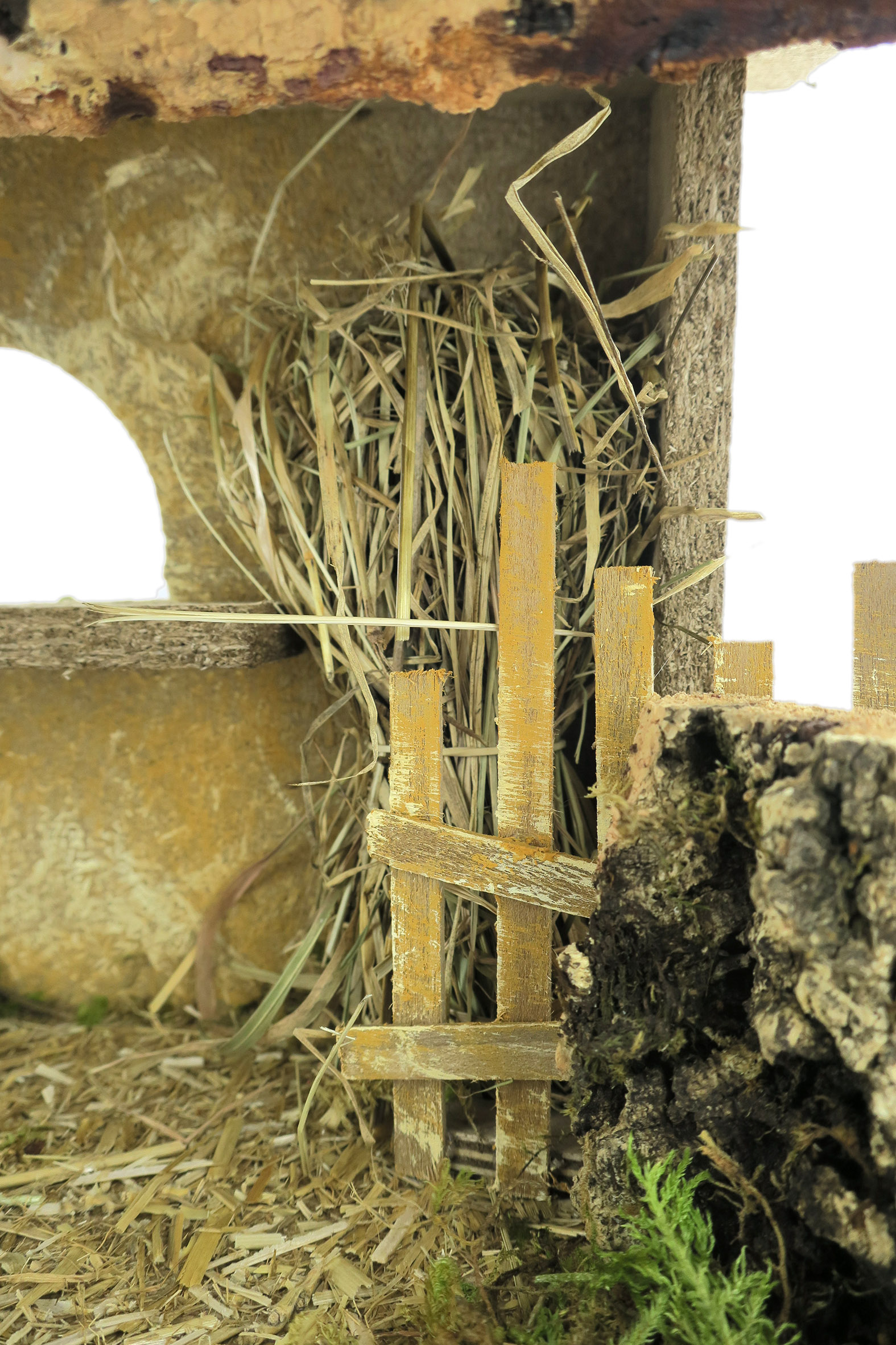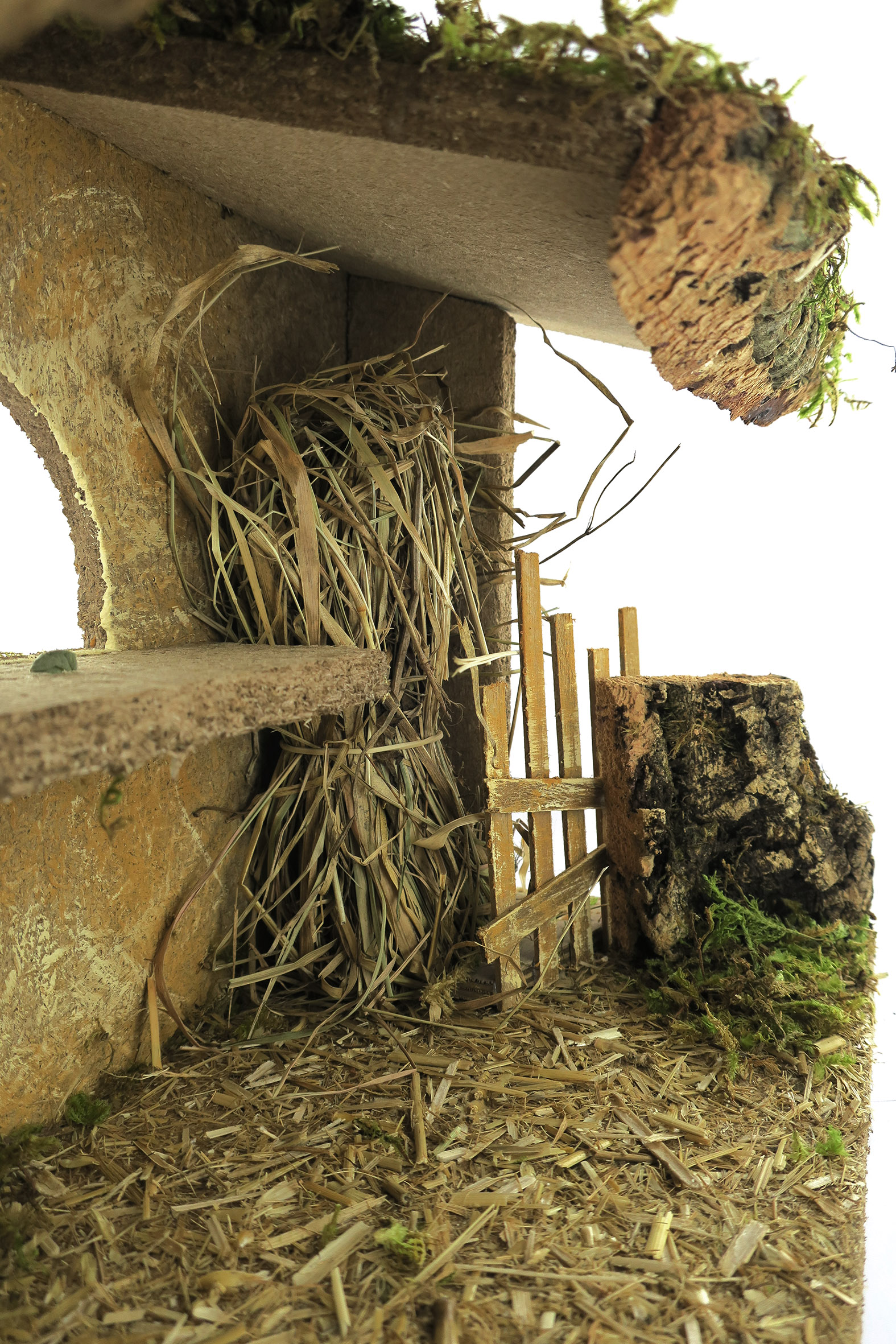 Capanna vuota con steccati e paglia, ideale per statuine da 10 cm. Altre caratteristiche: staccionate. Dimensioni: 36 x 16 x 27 cm. Materiali: Legno, Sughero, Paglia e Muschio. Realizzato artigianalmente in Italia.