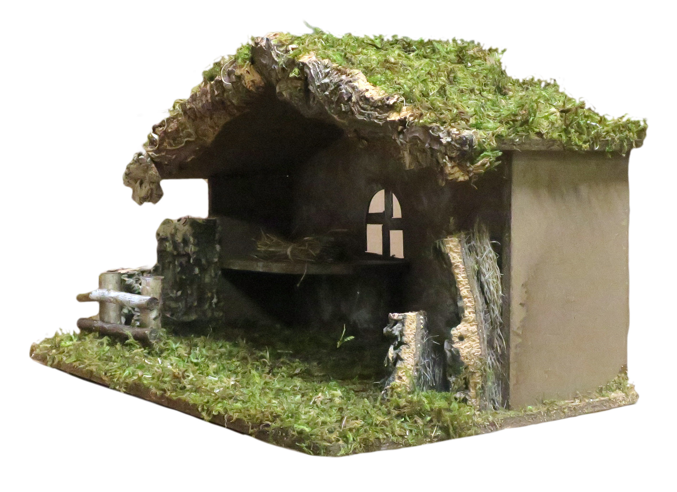 Capanna vuota con steccato, finestra e fienile. Ideale per statuine da 10/12 cm.