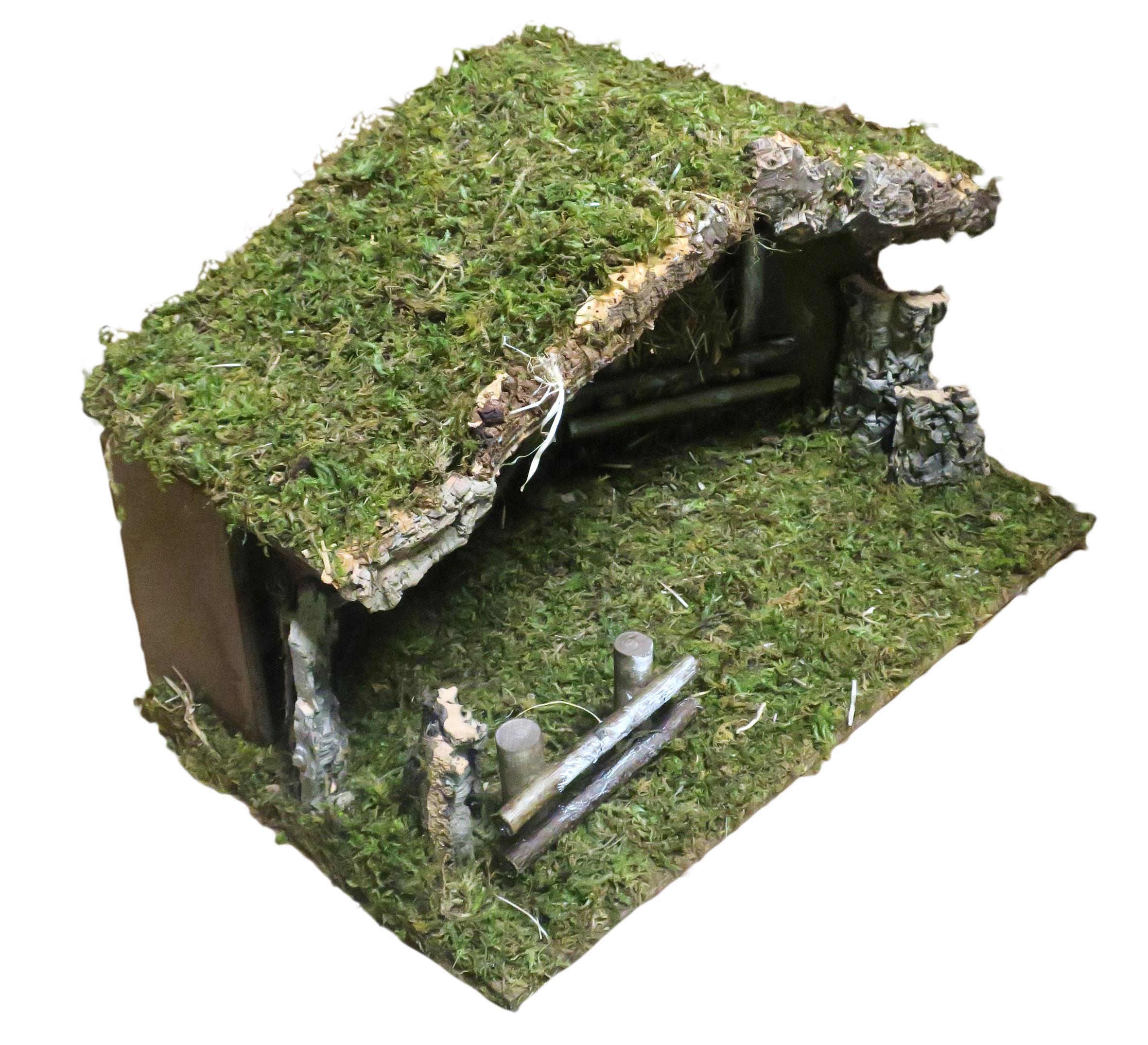 Capanna Vuota Rustica Adatta a Statuine da 10 o 12 Cm, Legno / Sughero / Muschio, Multicolore, 58 x 34 x 35 Cm