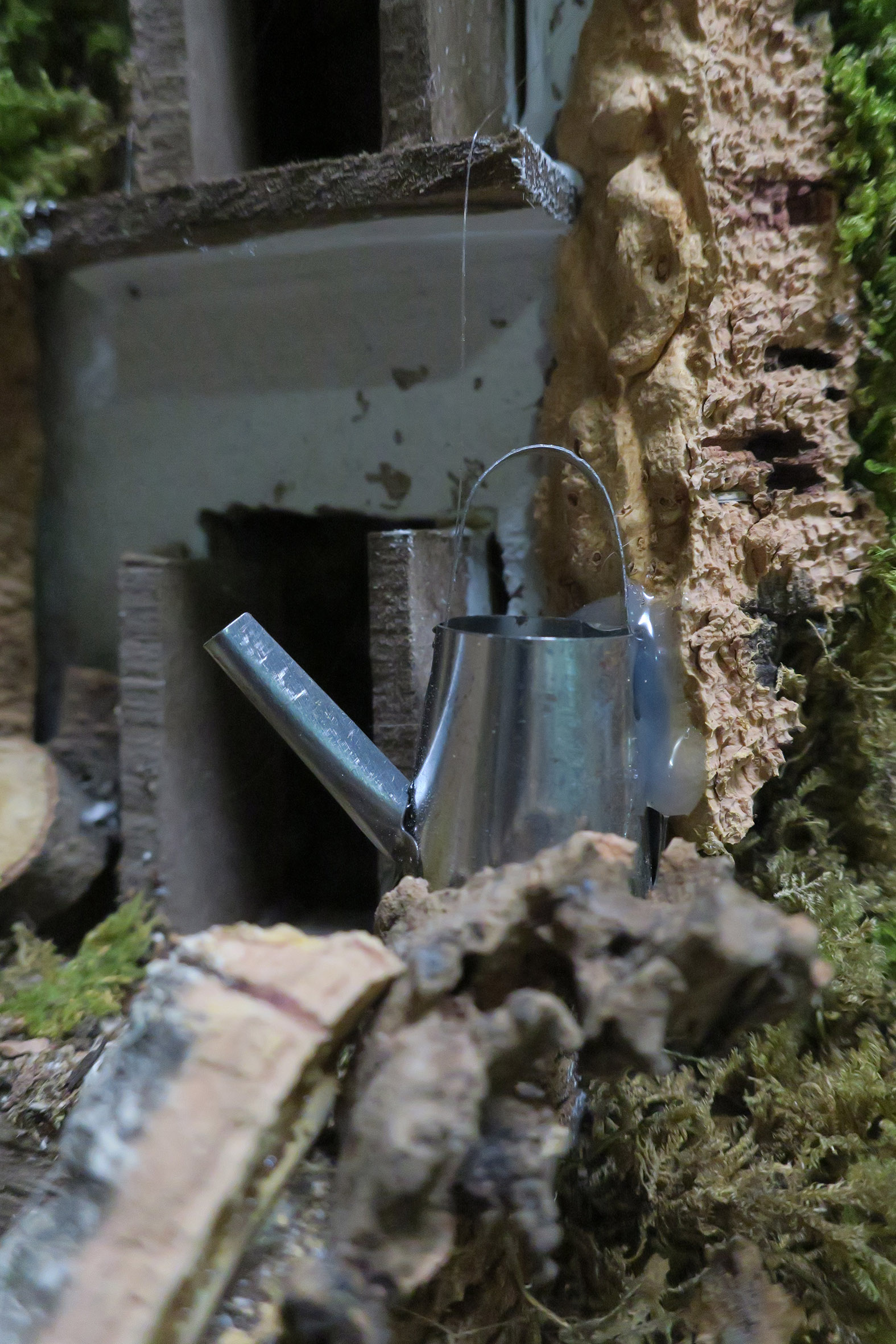 Villaggio con luci, mulino e cascata, completo di 6 statuine in resina da 10 cm e 3 pecore. Accessori elettrici: luci, cascata con acqua che scorre, mulino e fuoco. Alimentazione elettrica a 220 V. Altre caratteristiche: Tegole in terracotta. Dimensioni: 56 x 37 x 42 cm. Materiali: legno, sughero, stucco, muschio e plastica. Realizzato artigianalmente in Italia.