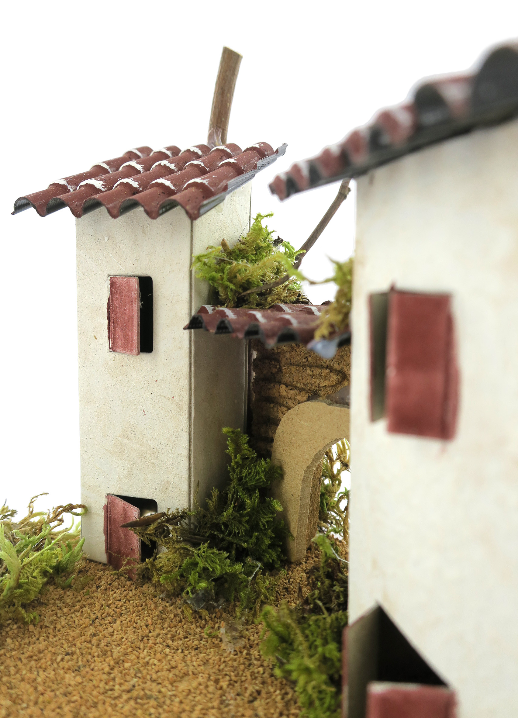 Casette per Presepe, Coppia Casette a Torre con Arco, Linea Presepe Bertoni, Dimensioni Indicative: 15 x 10 x 14 Cm
