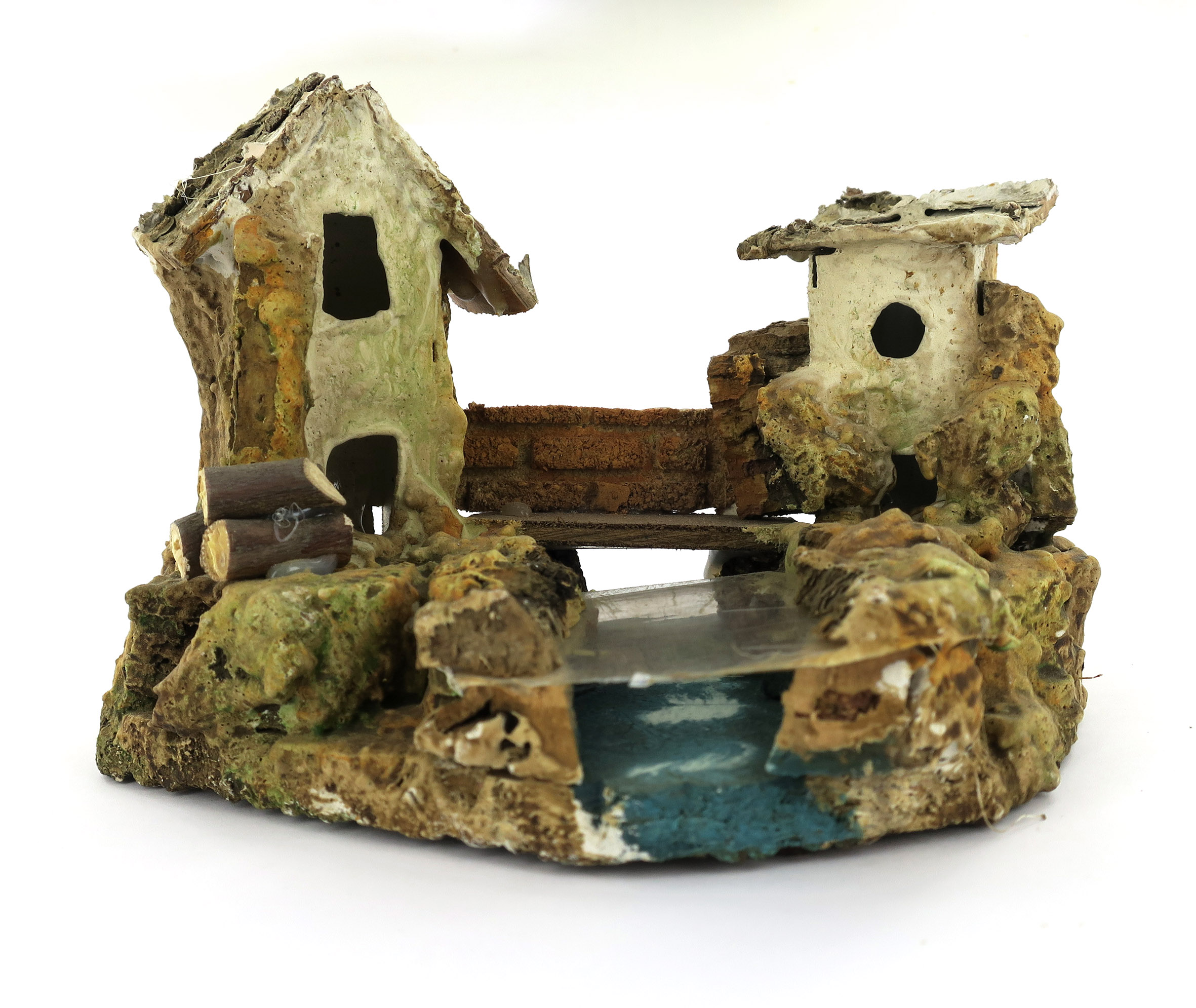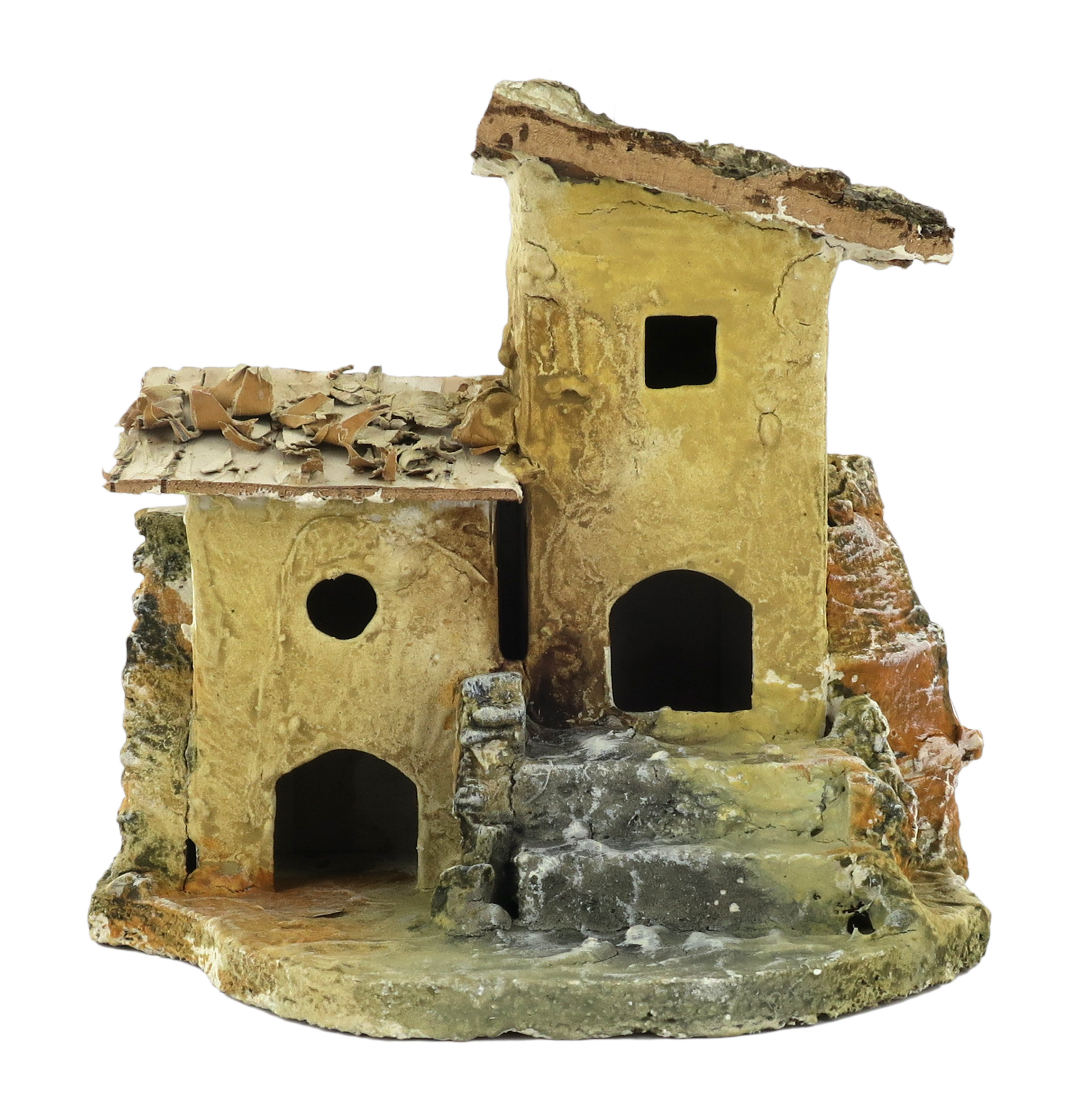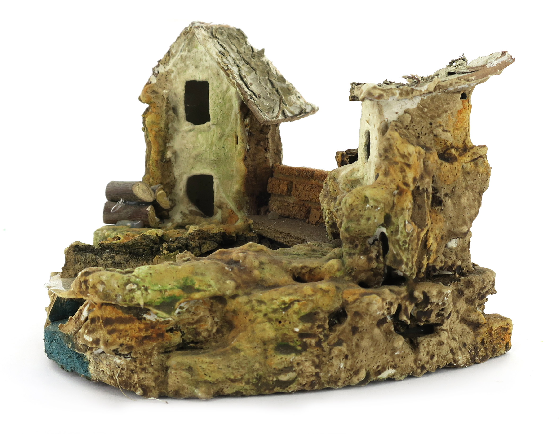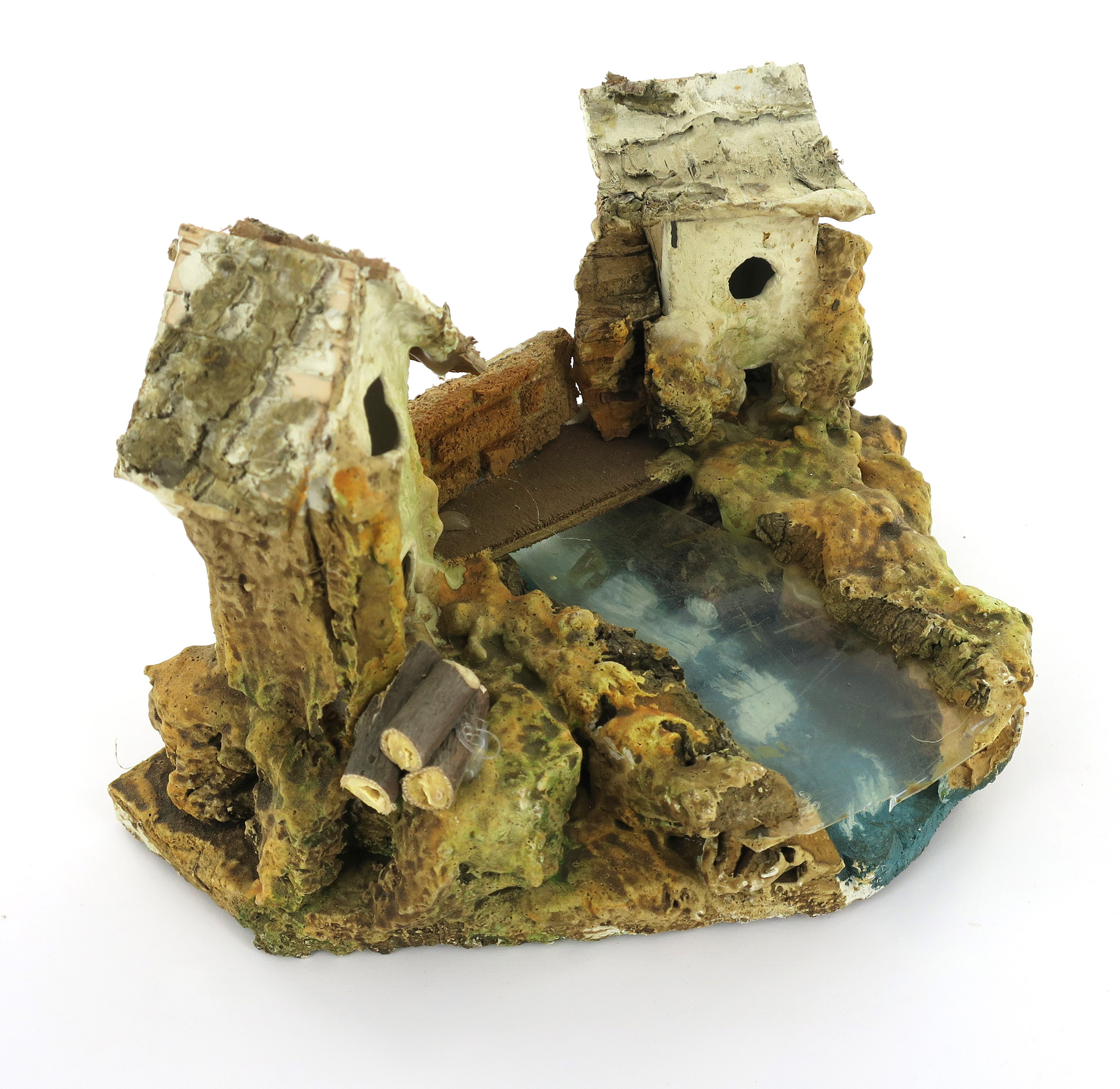 Coppie di casette per presepe (2 elementi); ogni elemento (indipendente) consta di una base unica su cui sorgono due casette. Il tratto di fiume sotto una delle coppie di casette è ampliabile con altri tratti di fiume per creare il corso di fiume secondo il tuo gusto personale. L'altra unità è composta da una coppia di edifici (una casetta bassa e una torretta). Materiali: legno, stucco e cartone. Dimensioni: 12 x 9 x 12 cm. Essendo prodotti realizzati a mano artigianalmente in Italia, potrete trovare delle piccole differenze e/o colorazioni, che non sono da considerare difetti.