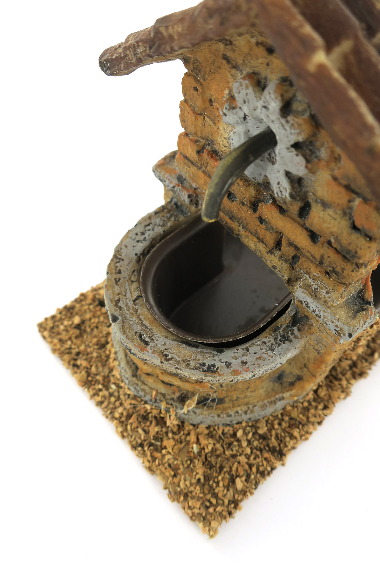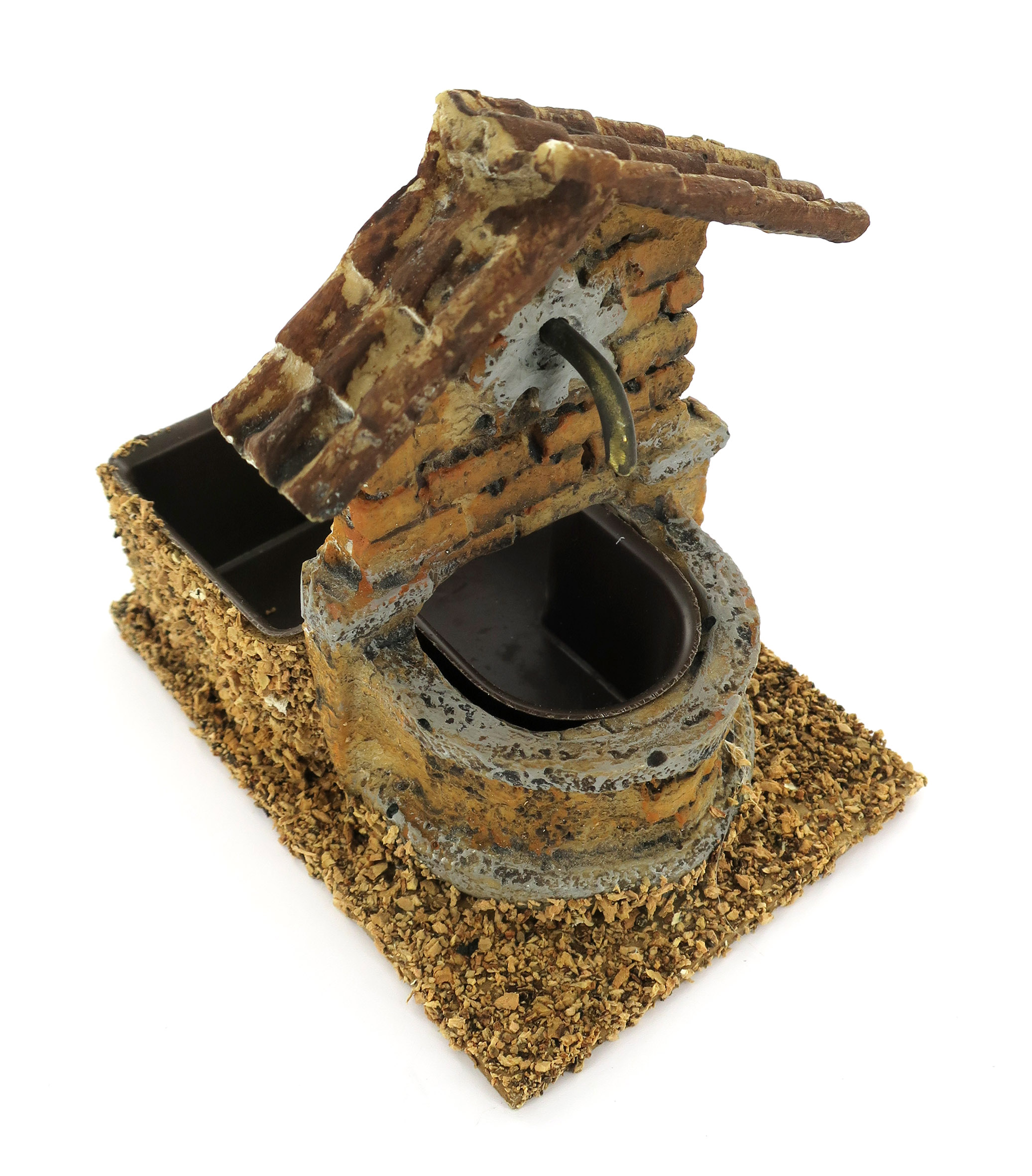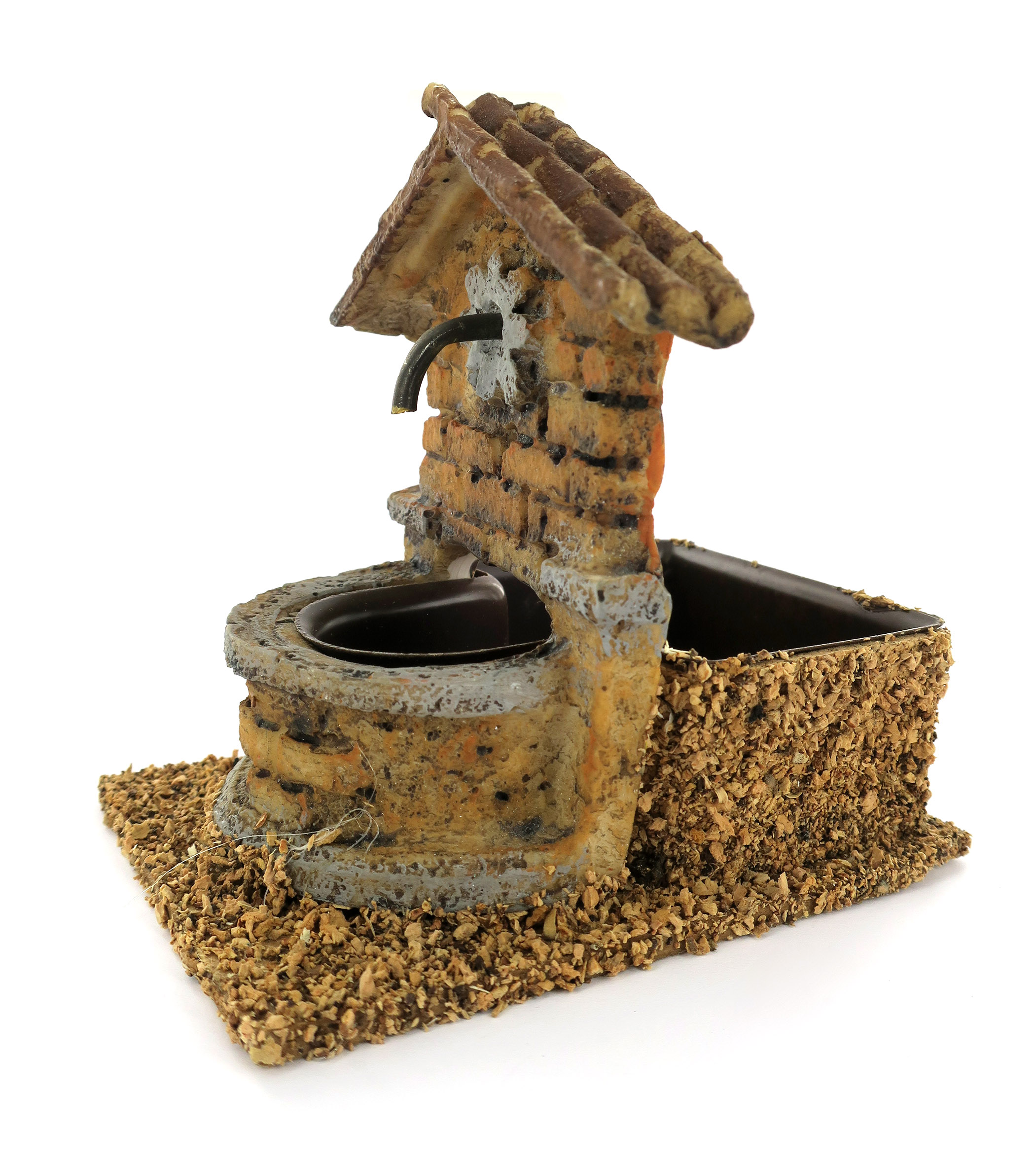 Accessori per presepe: Fontana elettrica in resina (alimentazione elettrica 220 V). Dimensioni: 11 x 12 x 14 cm. Materiale: resina. Realizzato artigianalmente in Italia.