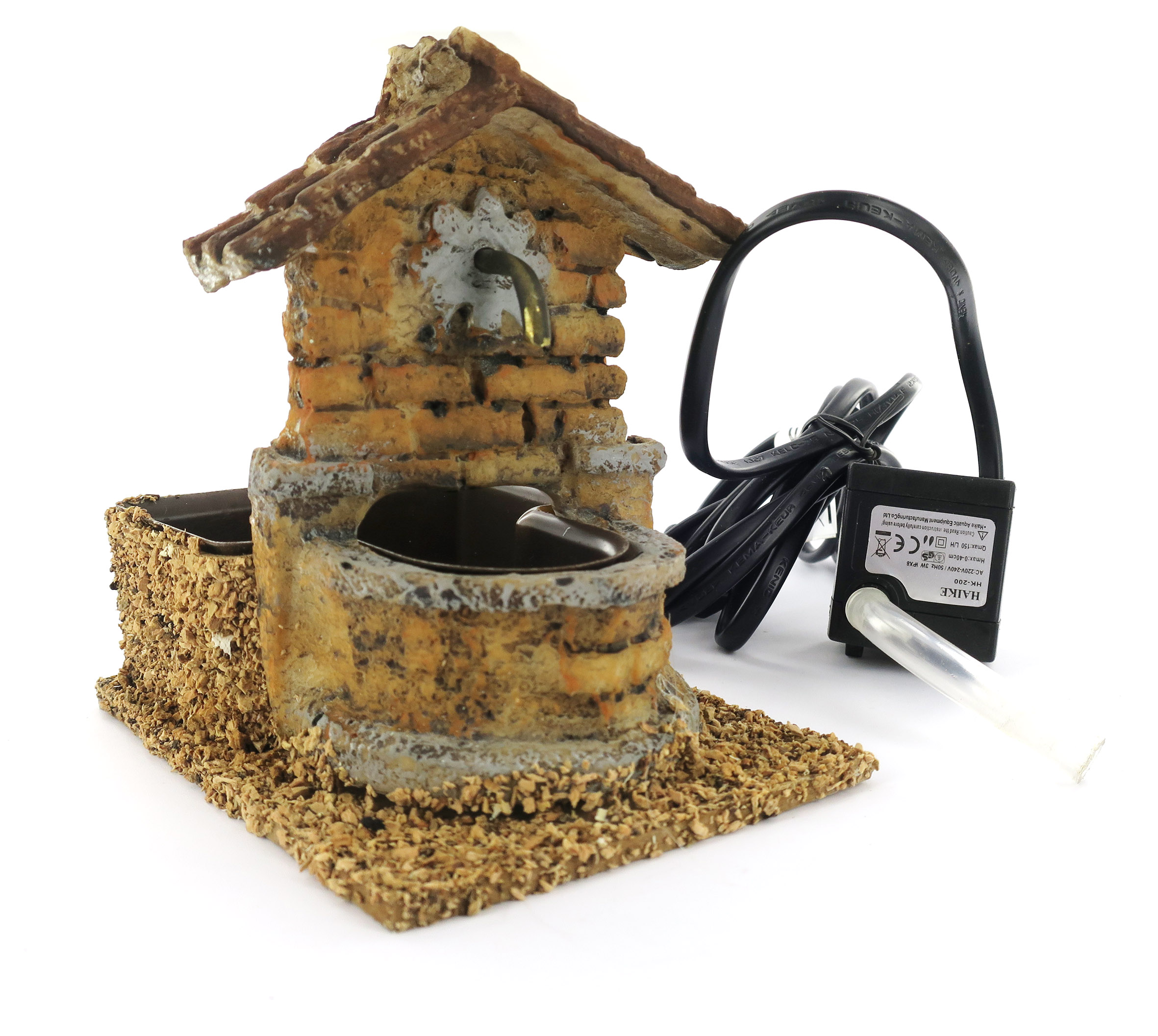 Fontana Elettrica con Acqua che Scorre per Presepe, Alimentaz. 220V, Legno/Resina, Multicolore, 11x12x14 Centimetri