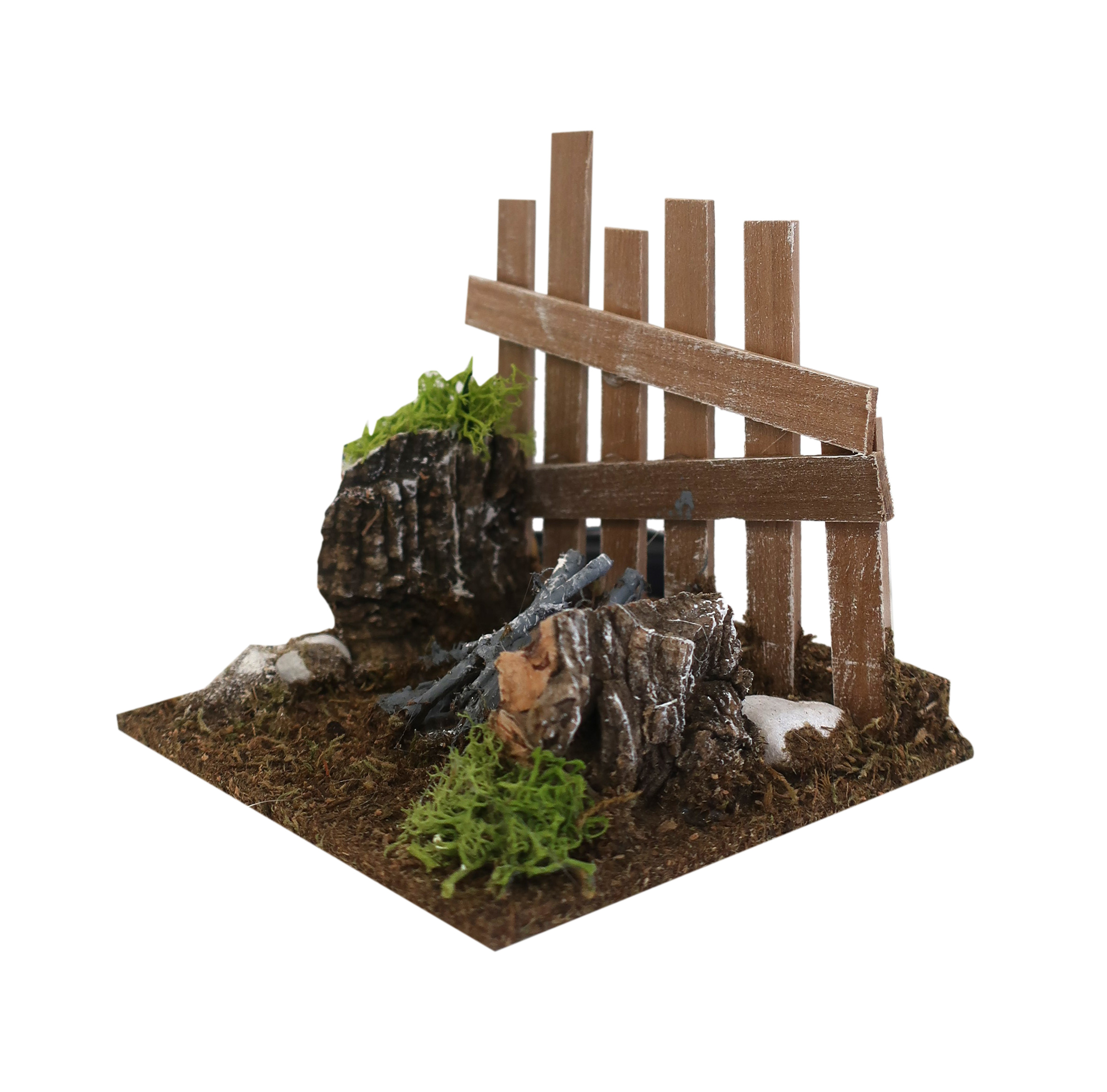 Accessori per presepe: Fuoco Da Campo Con Staccionata (Funziona a Batteria). Dimensioni: 10 x 10 x 11 cm circa.