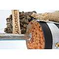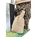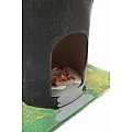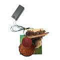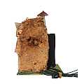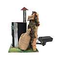 Accessori per presepe: stufa castagnaro con fuoco a batteria. Dimensioni: 8 x 9 x 14 cm. Materiali: legno, tessuto, plastica e sughero. Realizzato artigianalmente in Italia.