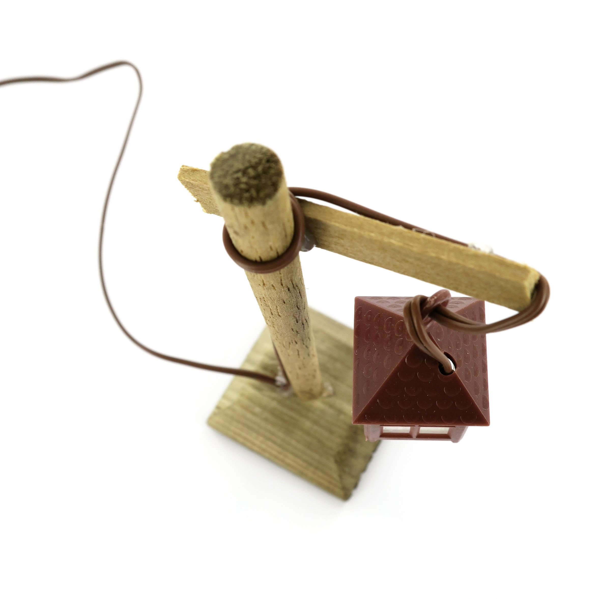 Accessori elettrici per presepe: Lampione con piedistallo e spina (3,5 V). Materiali: legno, plastica e materiale elettrico. Dimensioni: 5 x 5 x 15 cm.