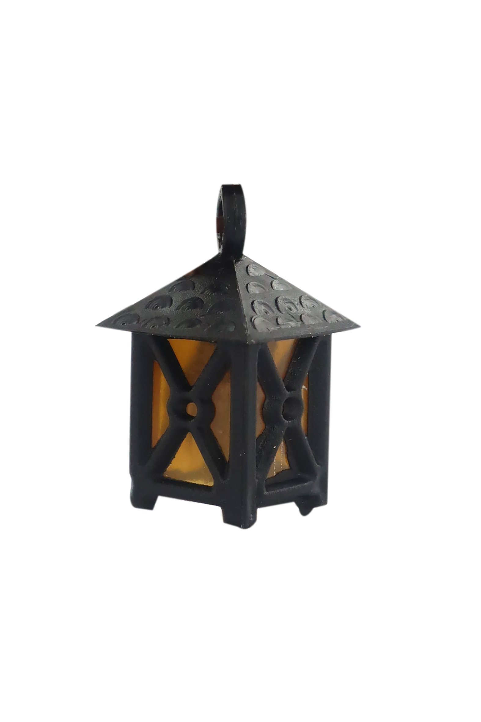 Accessori elettrici per presepe: Lanterna in plastica 3,5 V (spinettina piccola) con luce gialla. Dimensioni: 1,5 x 1,5 x 2,5 cm. Necessita di apposito accessorio.