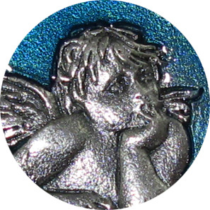 Medaglia in metallo raffigurante un angioletto (azzurro) Ø 2 cm