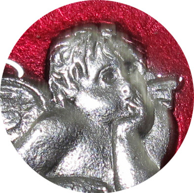 Medaglia in metallo raffigurante un angioletto (rosso) Ø 2 cm