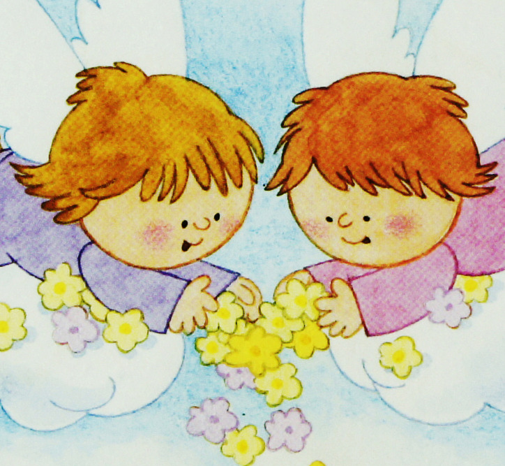 STOCK: Tavoletta con angeli su nuvola - 11 x 11 cm