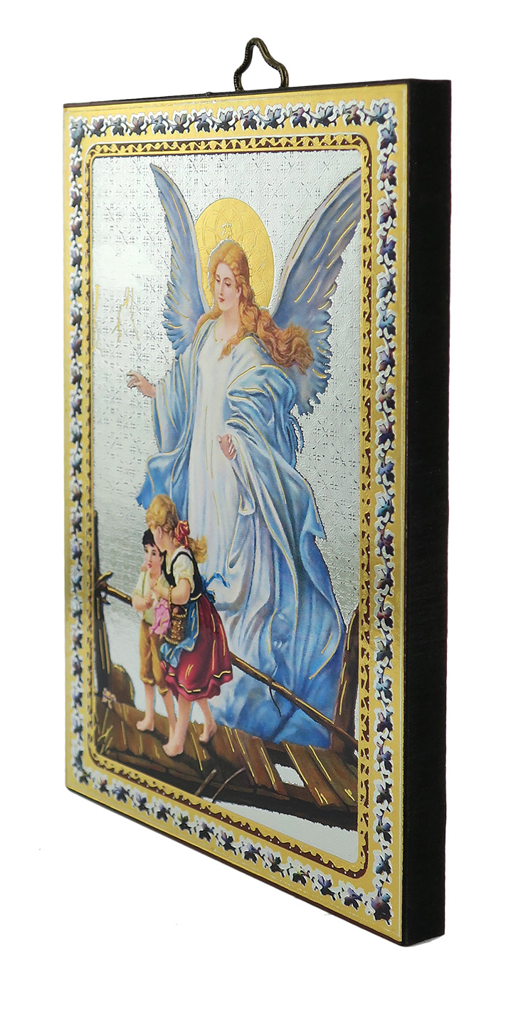 Tavola Angelo Custode in legno con lavorazione in oro e argento a caldo - 10 x 14 cm