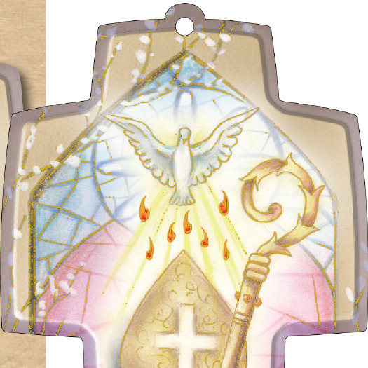 Insieme al biglietto c’è anche una croce in legno MDF che raffigura la colomba dello Spirito Santo. Quest’ultima, grazie a un pratico foro nella parte alta dell’immagine, potrà essere appesa a mo’ di quadretto dal Cresimando per permettergli di ricordare per sempre questo momento magico del suo percorso spirituale.