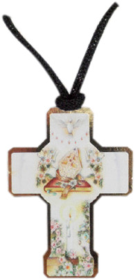 Insieme al biglietto c’è anche una croce in legno MDF stampata e finemente curato nei dettagli, che raffigura la luce divina dello Spirito Santo e la mitria, simboli di questo speciale sacramento.