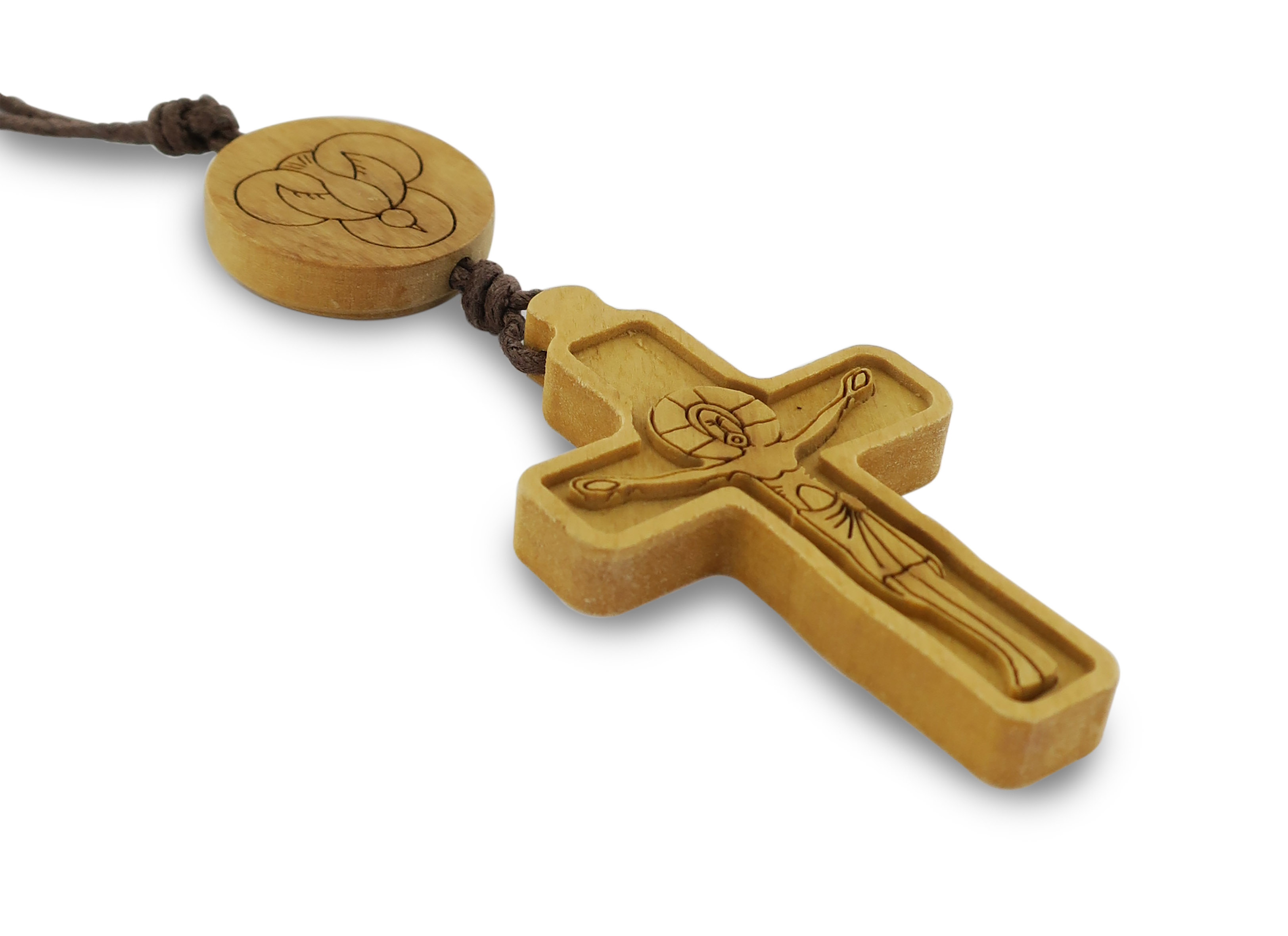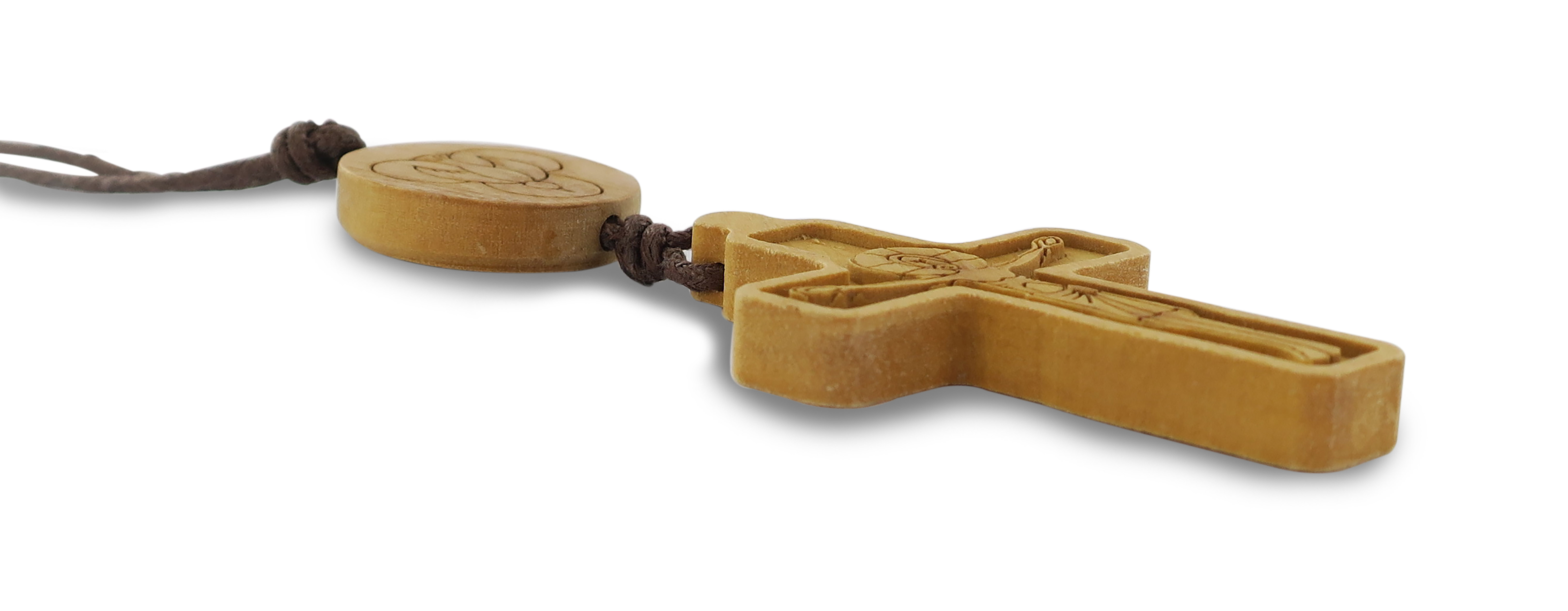 Croce con medaglione in ulivo con cordone - 9 cm