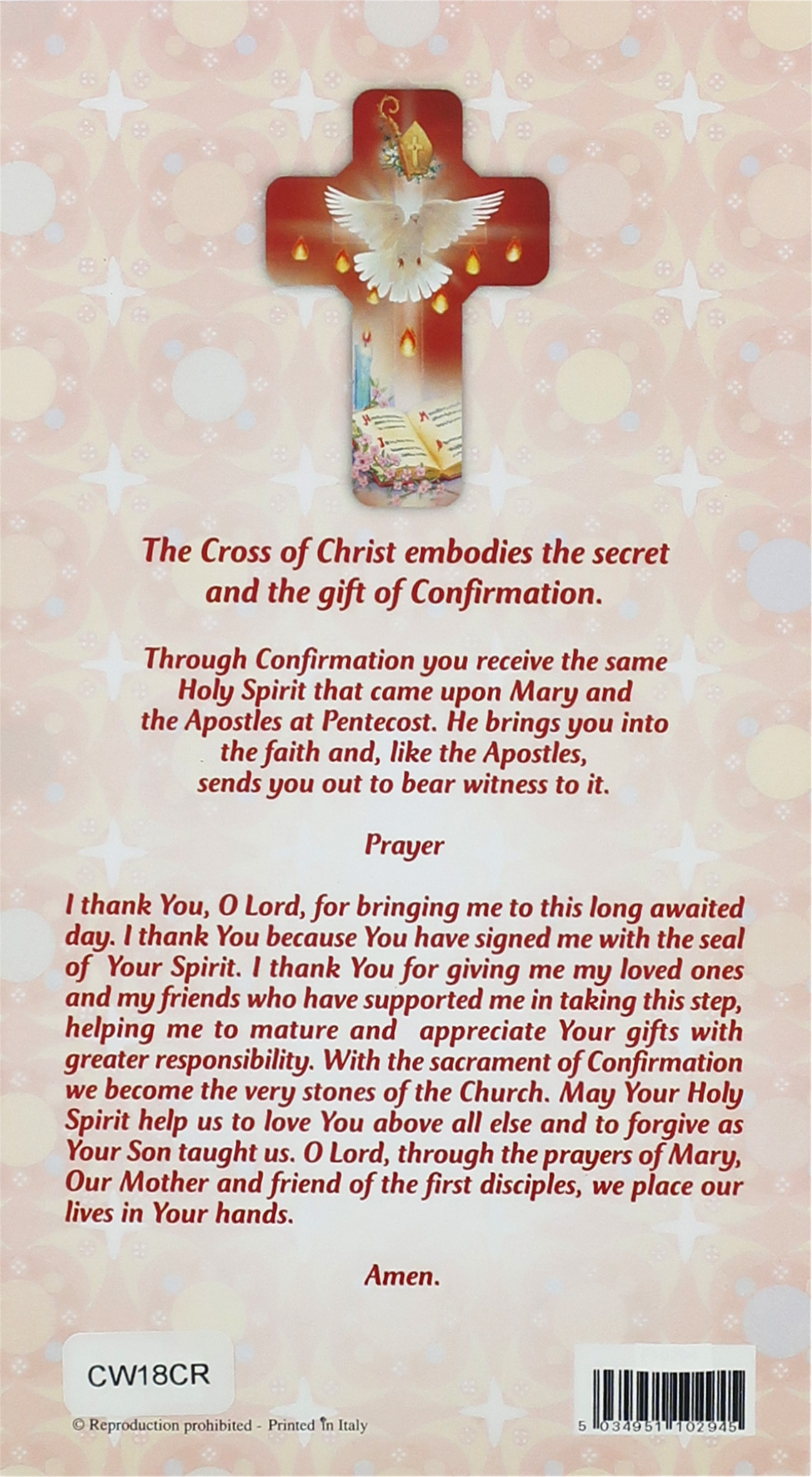 Croce Spirito Santo con certificato e preghiera in inglese