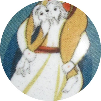 Il bordo in argento 925 incornicia il tutto. Il diametro è di cm 1,8. Il peso è di 1,5 gr.
