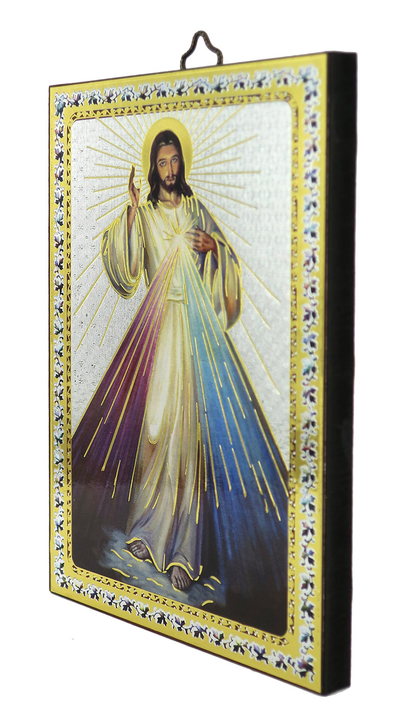 Tavola in legno di Gesù Misericordioso con lavorazione in oro e argento a caldo cm 10x14 con scatola