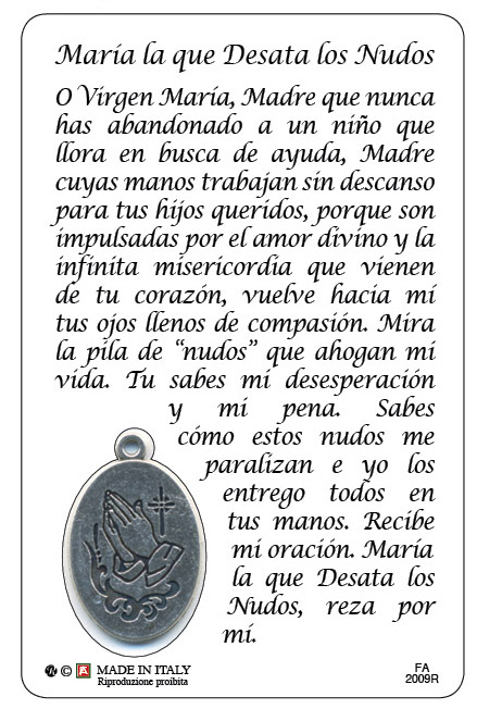 Card Maria che scioglie i Nodi con medaglia - 5,5 x 8,5 cm - spagnolo