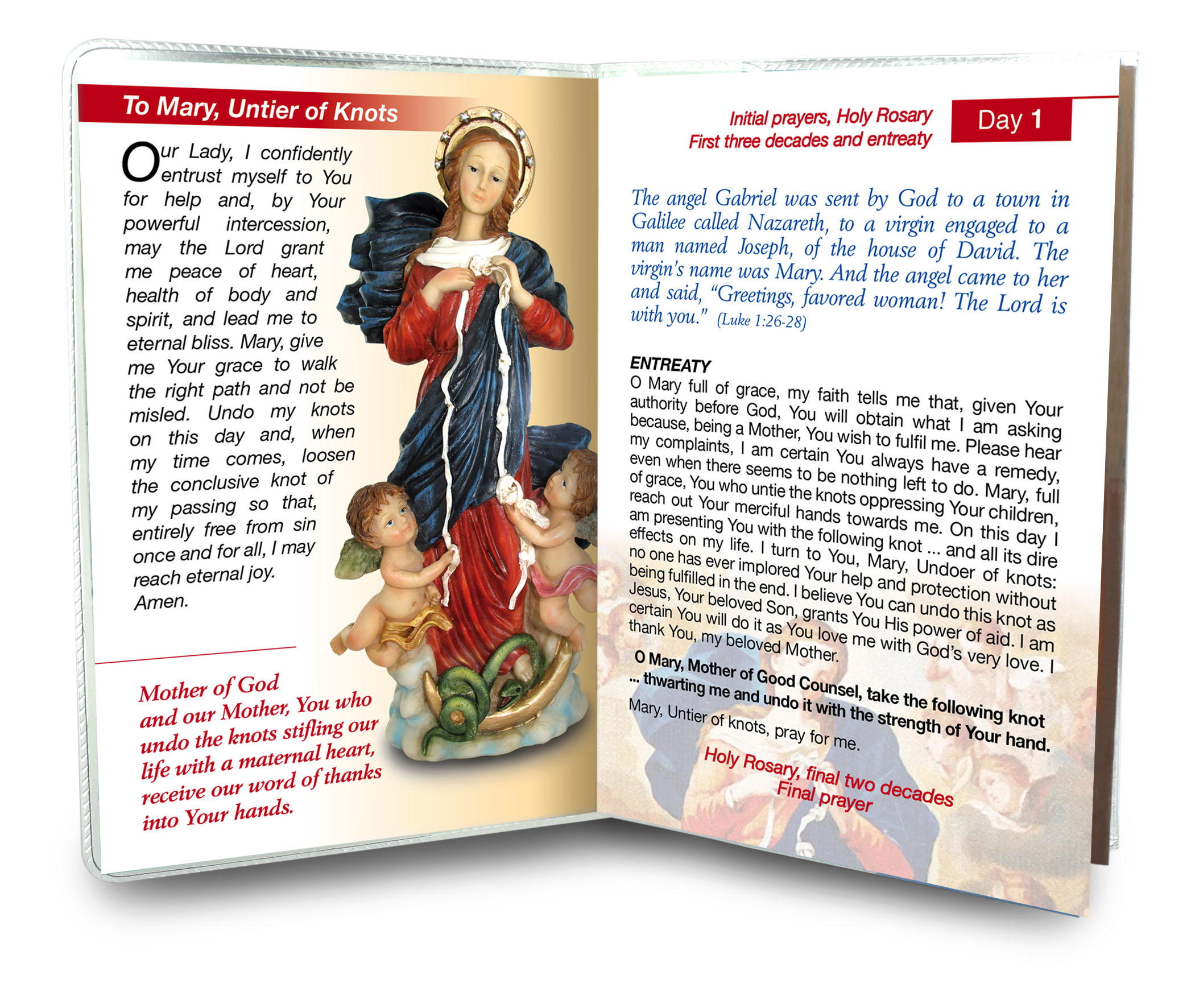 Nell'interno vi sono le invocazioni della novena a Maria che scioglie i nodi e una preghiera a lei dedicata.