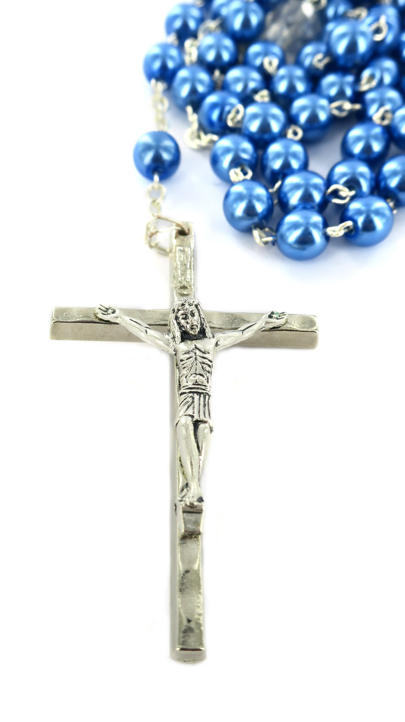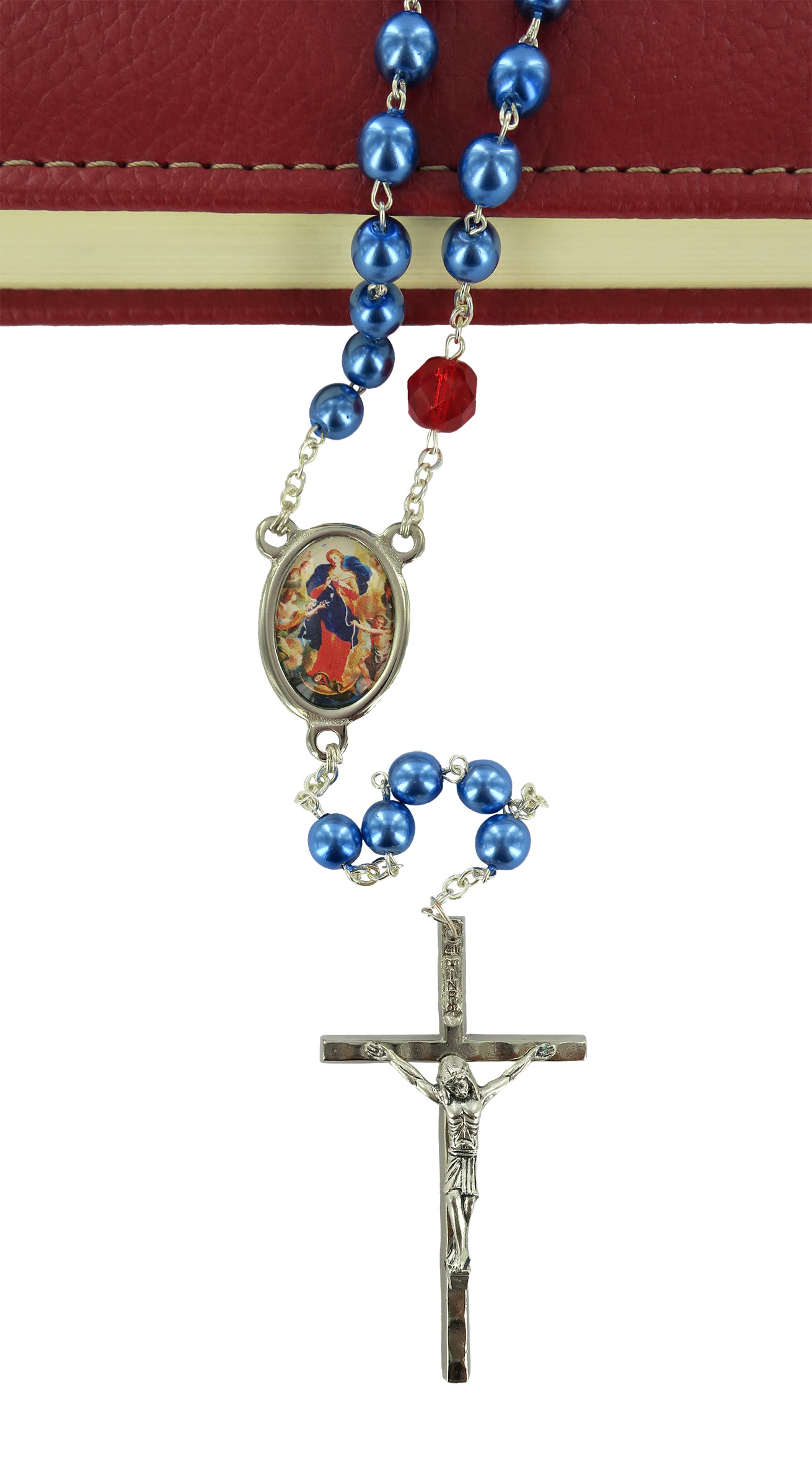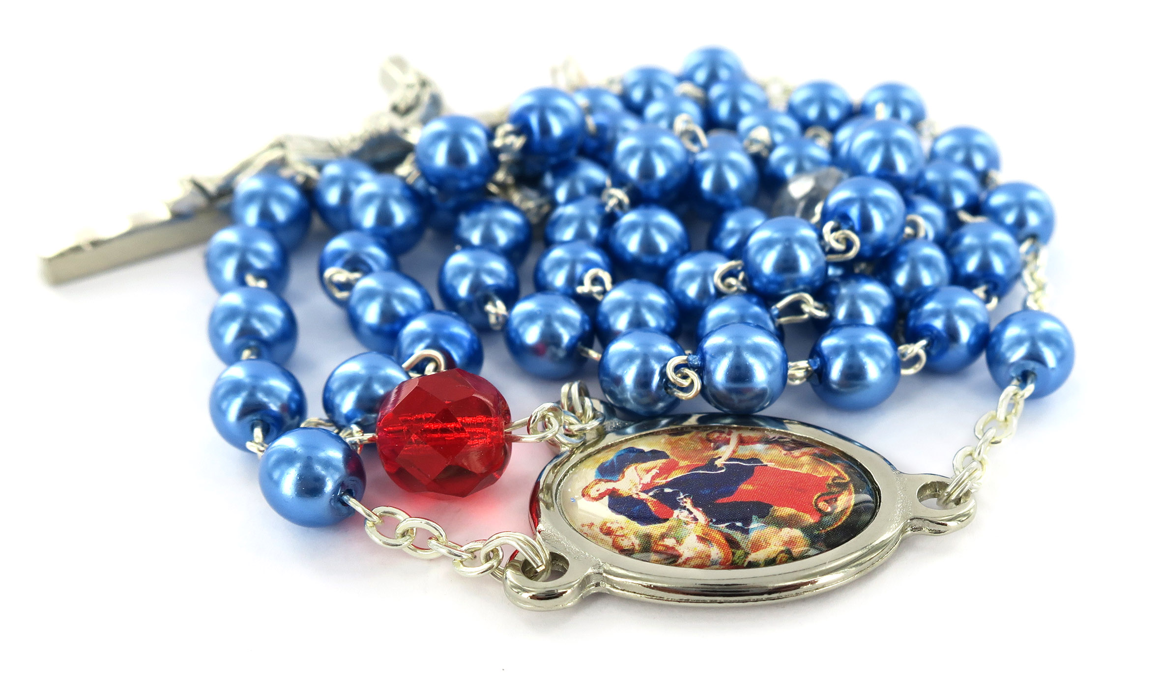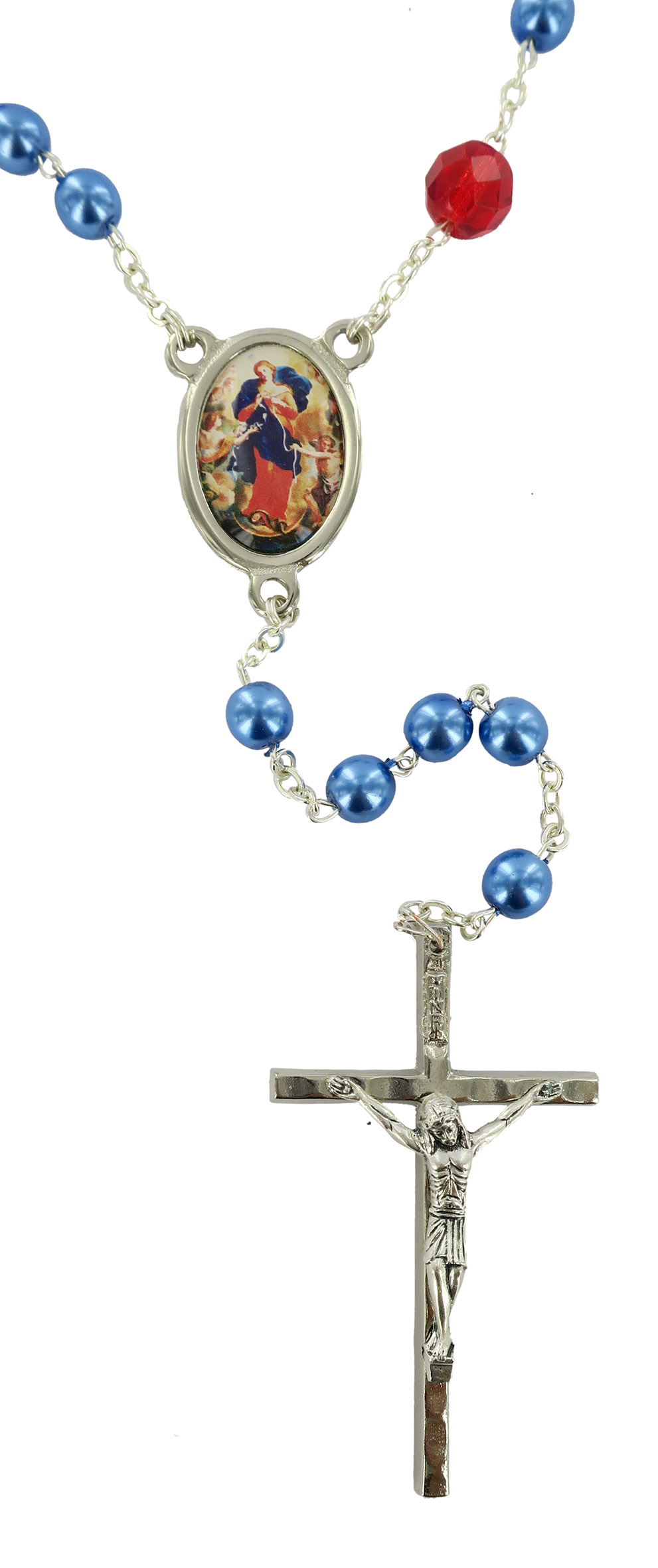 Rosario Maria che scioglie i nodi imitazione perla - Blu