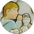 Bomboniera per la prima comunione realizzata in resina a forma di candela.