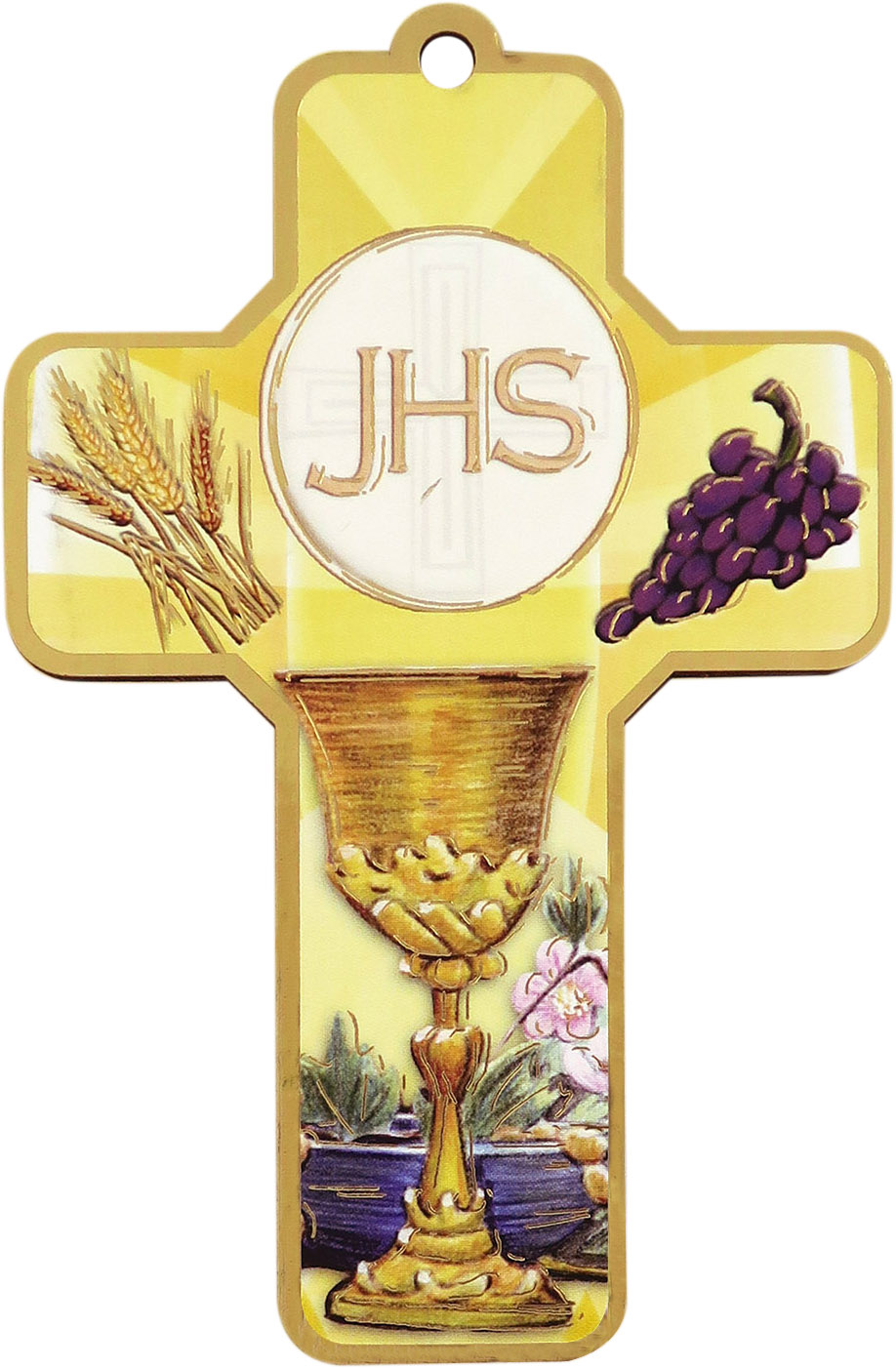 Questa busta contiene un cartoncino che ricorda il Sacramento della Comunione unito ad esso vi è una croce di cm 9x13, anch'essa che ricorda questo Sacramento.