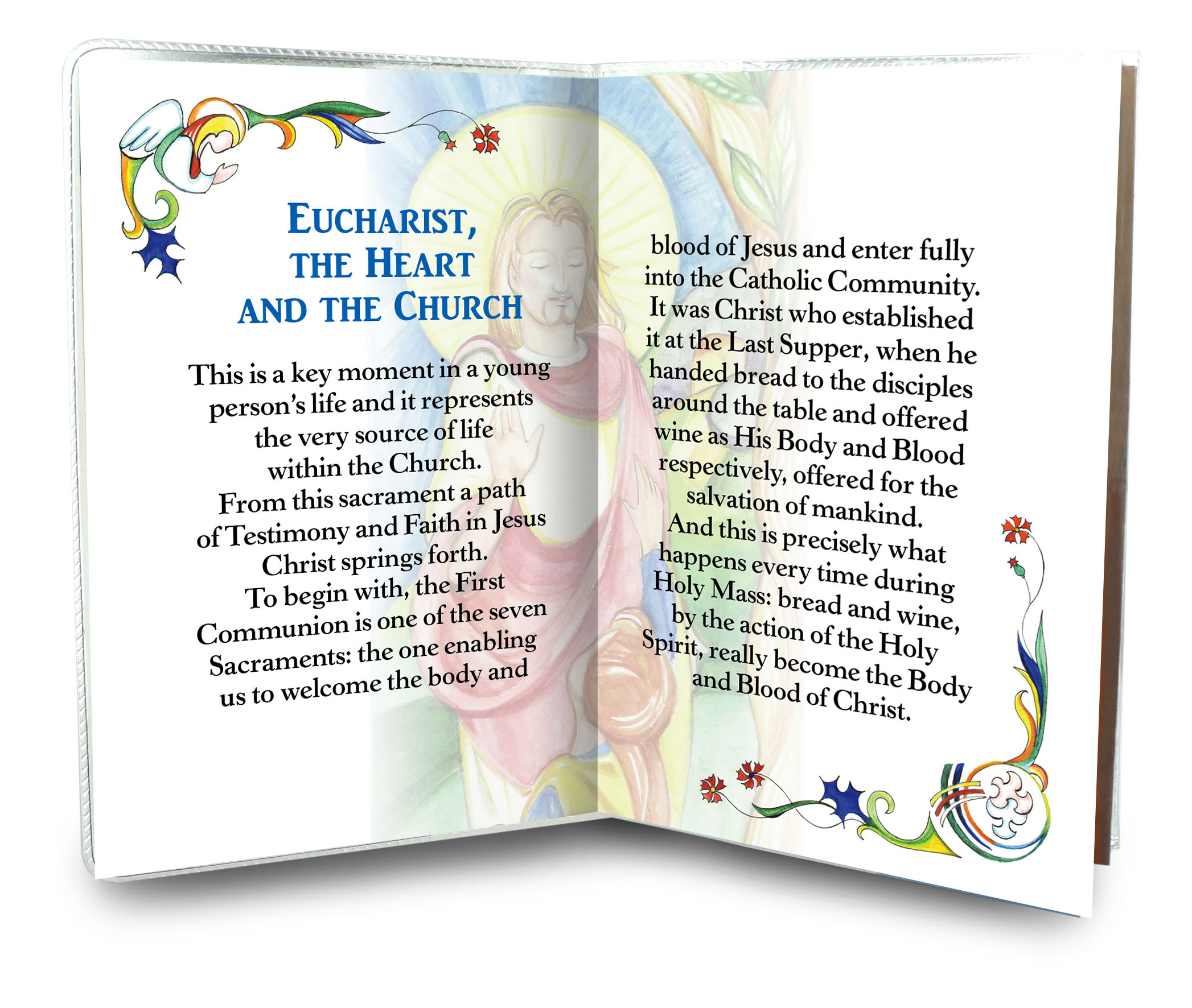 Bomboniera Comunione: Libretto ricordo della Prima Comunione con medaglia dell'eucaristia, testi in inglese